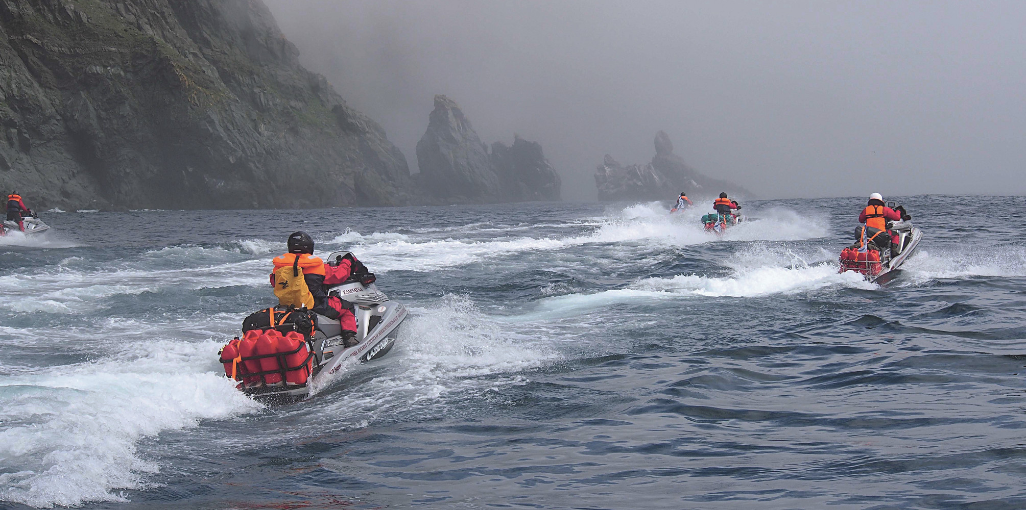 Когда мне предложили поучаствовать в экспедиции на гидроциклах к острову Беринга, я согласился сразу же. Мероприятие уникальное, да и опыт подобных путешествий уже имелся – 10 дней на аквабайке бороздил воды Байкала, так что некое представление о предстоящих трудностях у меня было. А трудности, надо сказать, вполне реальные: колоссальная физическая нагрузка, пересечение открытого участка океана с материка на остров и обратно – предстояло идти без судна сопровождения. Страшили медведи на берегу, да и косатки в океане совсем не радовали. Вроде бы на людей они не нападают, но это в теории... В общем, было время подумать о многом, но давать задний ход – поздно. Если отказаться от такой экспедиции, можно потом жалеть об этом всю жизнь...