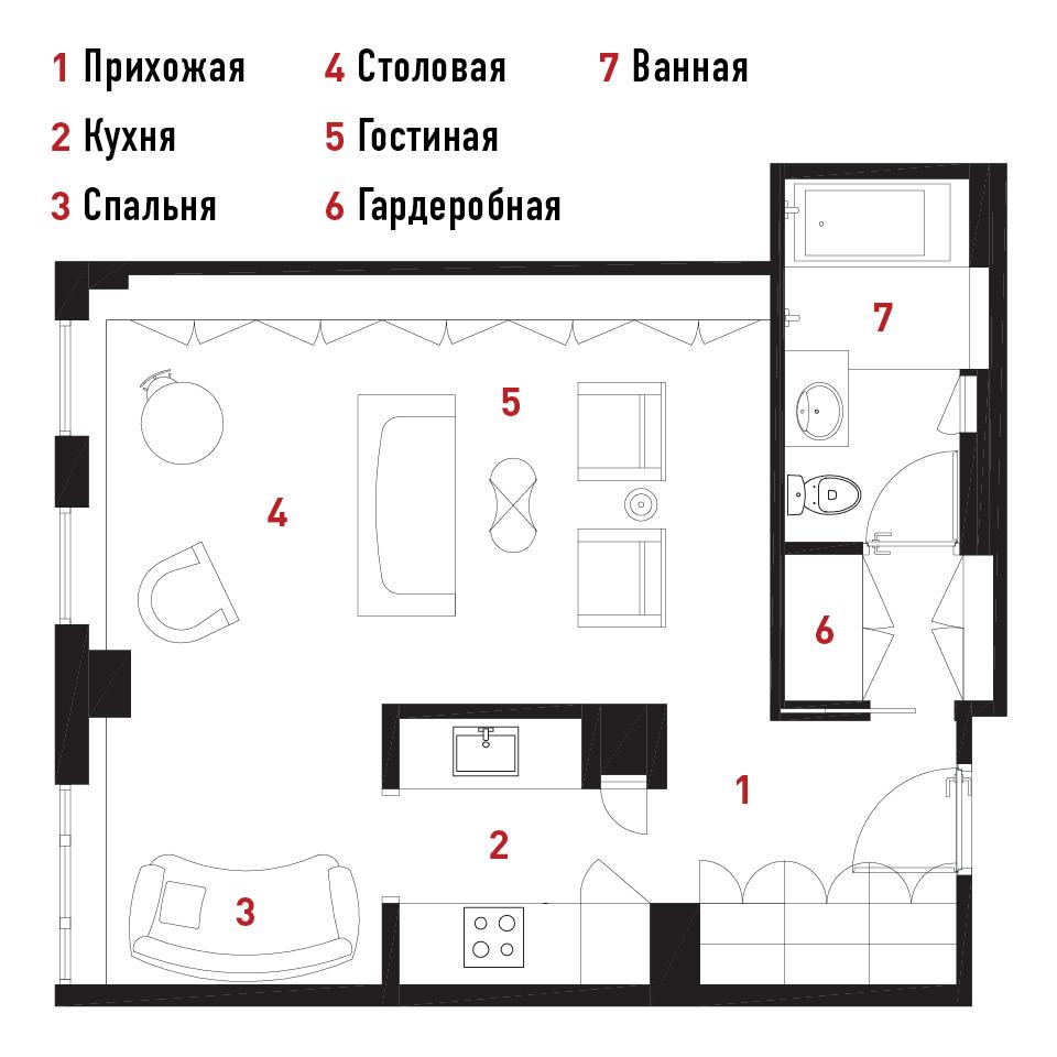 Оформлять квартиру Геринг помогал нью-йоркский архитектор датского происхождения Томас Юул-Хансен. “Я попросила его спроектировать пространство, где есть все необходимое для одного человека: кровать, стул, стол и светильник”, — рассказывает хозяйка. В реальности все вышло чуть менее по-спартански, но планировка у квартиры действительно проще некуда: обособлены только ванная с гардеробной, все остальные функциональные зоны — спальня, кухня, столовая и гостиная — находятся в едином пространстве. Это один из моментов, который роднит квартиру с виллой E‑1017 — там тоже практически отсутствуют межкомнатные перегородки.