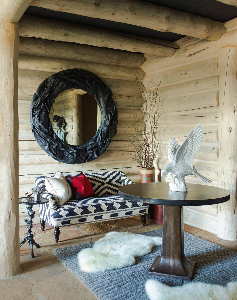 Такие дома — стопроцентная американская классика, и есть расхожие клише относительно того, чем украшается их интерьер: текстиль с индейскими орнаментами, оленьи рога и так далее. Кое-что из этих ожидаемых предметов можно встретить и здесь, но это скорее игра со стереотипами, чем рабское следование им. “Дом из бревен мои клиенты выбрали вовсе не случайно, — говорит Том Филишиа. — В целом мы хотели проявить уважение к традиции, но только со свежим подходом”. К примеру, на одном из диванов можно увидеть подушку с обивкой в стиле индейцев навахо, но вокруг полным-полно предметов, которые должны свидетельствовать о том, что вообще-то хозяева много путешествуют и за пределами Колорадо: французская этажерка, турецкий килим, индонезийский барабан, превращенный в столик. Бревна, из которых сложен дом, заново отшлифовали, чтобы убрать тонировку, с каменного пола тоже свели наведенный лоск, и в результате пространство приобрело более чистый, свежий и естественный вид.