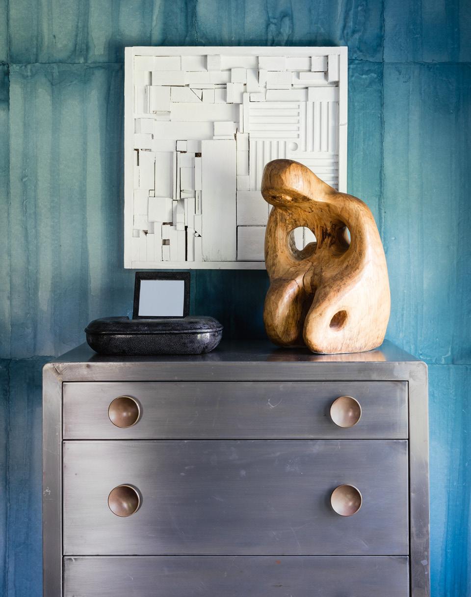 В архитектурном смысле изменений было немного. Самое значимое, что сделали, — это убрали лишние перегородки на первом этаже, чтобы образовалось единое открытое пространство. Основные же преобразования случились по декоративной части. Уитни строго-настрого запретила дизайнеру обращаться к морской тематике, поэтому ни необработанных тканей, ни текстиля в полоску, ни деталей в виде канатов, якорей и прочего здесь нет. Зато есть современный интерьер с яркими этническими предметами и смешными деталями. Например, в прихожей стоит корзина с каменными яйцами, одно из которых лежит отдельно — это напоминание, что не стоит класть все яйца в одну корзину. А входная дверь выкрашена в яркий розовый цвет — это была навязчивая идея Уитни. До этого дверей такого цвета в Хэмптонс она не видела ни разу.