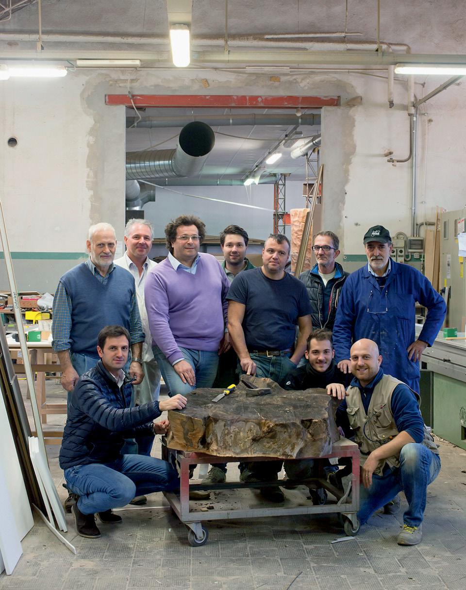 Требования к качеству мебели были высокими, поэтому дизайнерам Cesare Ferrari Group пришлось сделать несколько прототипов каждого предмета, чтобы добиться идеальных пропорций и проверить эргономику и устойчивость. “Перед нами стояла задача, требующая большой концентрации и профессионализма, — рассказывает один из соучредителей марки Серджо Скалабрин. — Это был отличный опыт, который помог нам вырасти. Многие технологии, использованные в производстве этой коллекции, были экспериментальными”. Например, дверцы шкафчика Crystal с отделкой из бронзированной латуни и кабошонов горного хрусталя довольно тяжелые, поэтому основу шкафа пришлось делать из алюминиевых сот, чтобы при открывании дверцы не отвисали и не вырывали мебельные петли из гнезда. “Одной из самых неожиданных проблем стало полное отсутствие на рынке изящной фурнитуры, — подхватывает второй брат, Фабио. — Пришлось проектировать самим. Мы не могли позволить себе использовать в элегантной мебели кухонные механизмы открывания”. Так, для откидной панели бара Manhattan и дверец шкафа Crystal мастера разработали телескопический фиксирующий крепеж с мягкой амортизацией. Его сделали из бронзированной латуни.