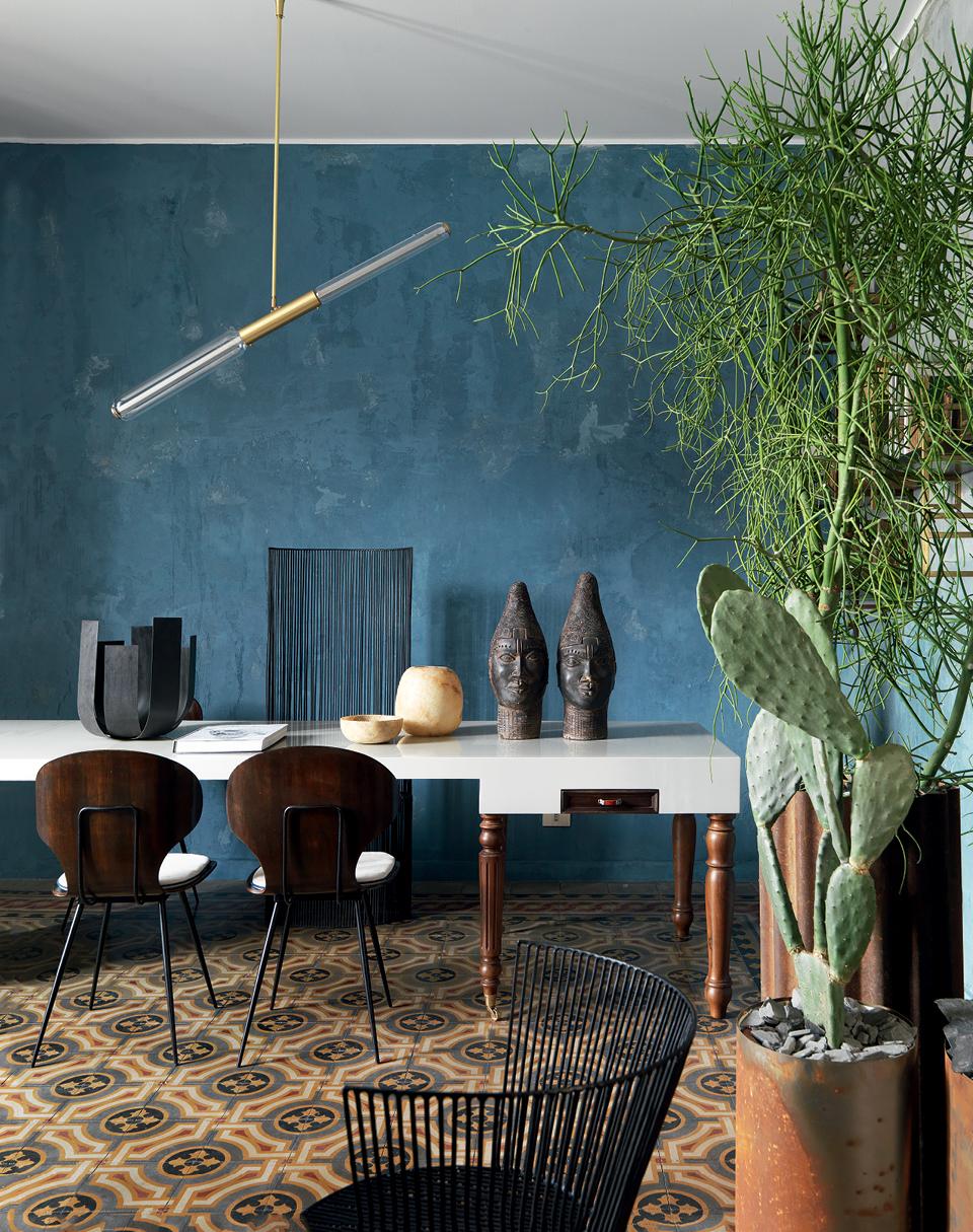 Поскольку Стефано работал в Брианце — месте, где, кстати, производится большинство предметов с пометкой made in Italy, — выбор озера Комо оказался естественным. Ну еще бы — несложно соблазниться ретроатмосферой, царящей там, и потрясающими по красоте закатами. “Теперь я могу наблюдать закат (а это мое самое любимое время суток) и смотреть, как магический свет окутывает весь мой дом”, — говорит дизайнер, улыбаясь. Стефано относится к дому как к месту, где можно высказаться, и речь эта едва ли когда‑то будет закончена. Дизайнер постоянно добавляет в обстановку то, что привозит из многочисленных поездок по свету, а это делает интерьер живым и постоянно меняющимся.