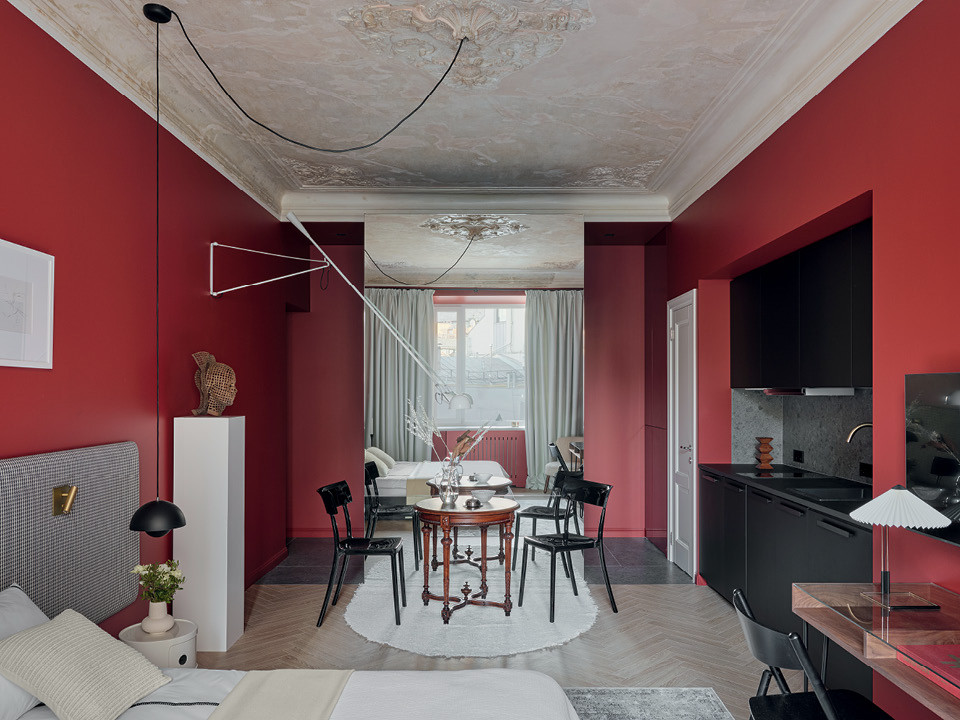 Дизайнер Владимир Березин прекрасно работает с маленькими пространствами, умеет визуально их увеличивать и разместить на небольшой площади все необходимое. Его заказчик живет за городом, а квартиру с видом на Исаакиевский собор купил для того, чтобы иногда оставаться в центре и с перспективой сдавать ее на Airbnb.