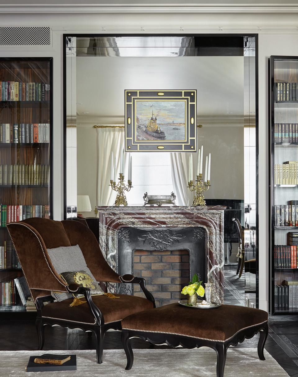 Владельцы этой квартиры – супружеская пара, которая большую часть времени проводит в рабочих командировках, но планирует осесть в родном Санкт-Петербурге. Оформлять интерьеры они пригласили петербурженку Марину Филиппову, с работами которой были знакомы. “Хозяева мне сразу сказали, что очень хотят латунную перегородку, которую видели в одном из моих проектов”, – вспоминает декоратор. И идеальное место для этой перегородки, конечно же, нашлось.