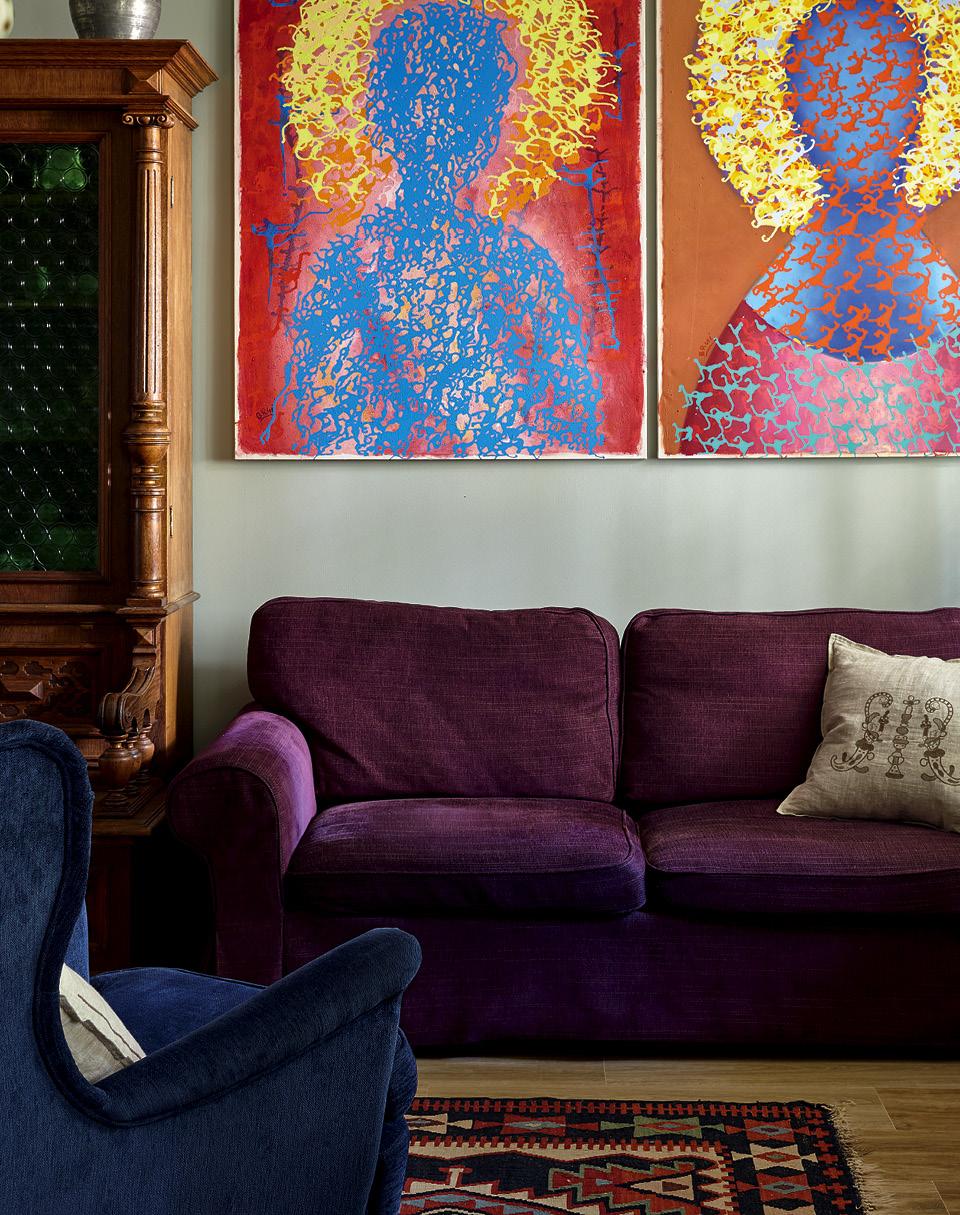 Квартира Ольги Коротковой на Патриках — наглядное опровержение стереотипов. Под окнами вместо шумных питейных заведений — тихий палисадник, а внутри русский антиквариат мирно соседствует с живописью актуальных украинских художников.