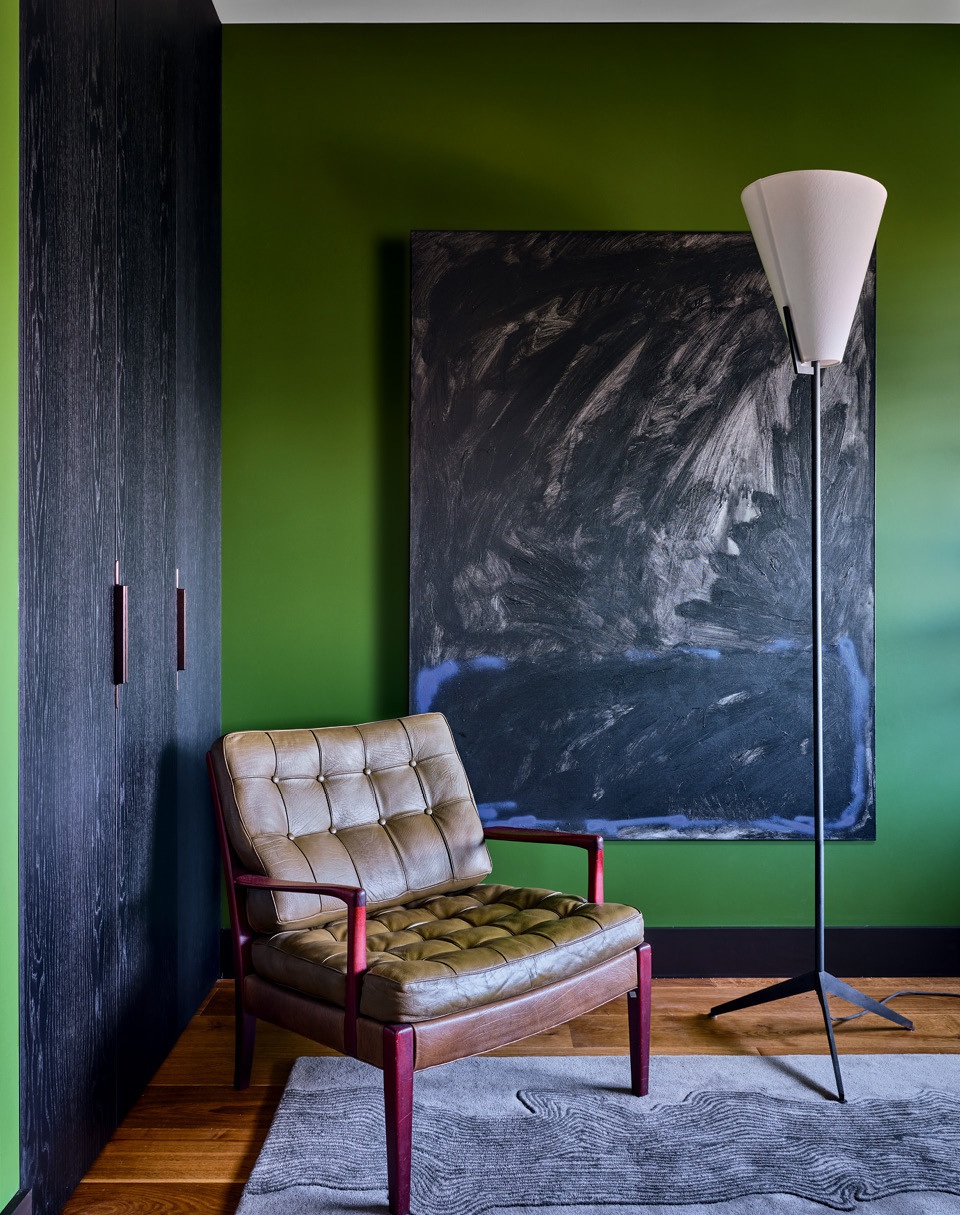 Изначально в квартире было две комнаты, кухня и коридор, на который приходилось целых 10 м² драгоценной площади. Несущих стен внутри не было, поэтому планировку можно было менять как угодно, учитывая только расположение мокрых зон. Дизайнер убрал стену, разделяющую коридор и гостиную, и в глубине комнаты разместил кухонный гарнитур. На месте бывшей кухни расположился кабинет, а спальня осталась там же, где и предполагалось застройщиком. Отдельную гардеробную решено было не делать — за хранение в квартире отвечают высокие шкафы в кабинете и спальне, а также часть шкафов на кухне. При входе Илья сделал небольшую кладовую для чемоданов и сезонной одежды, а постирочная спрятана в шкафах около санузла.