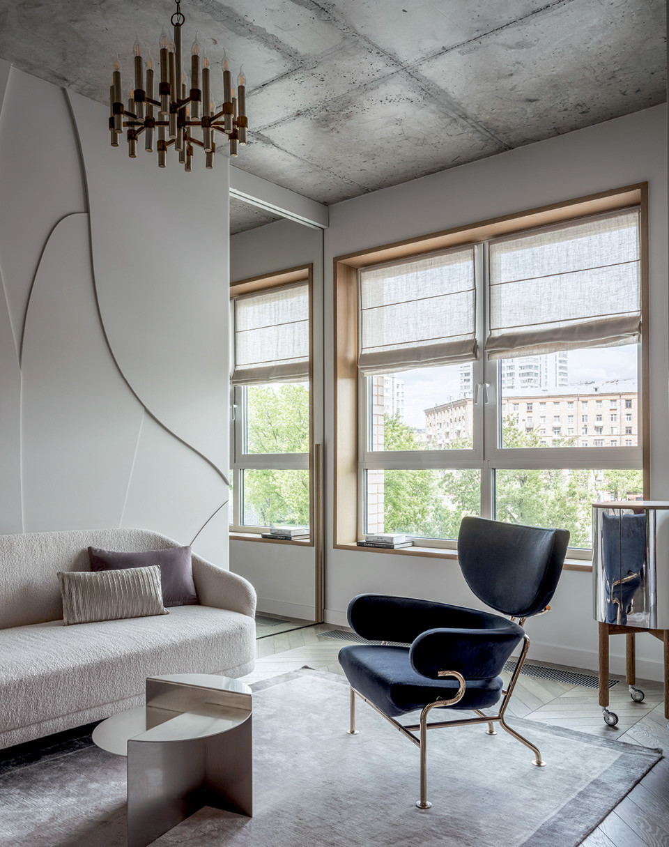 Хозяйка этой квартиры — давняя подруга дизайнеров Ирины Маркман, Екатерины Нечаевой и Натальи Зенченко. Как-то на выставке в галерее Art & Brut, которая также принадлежит им, эта подруга влюбилась в огромную работу художницы Елисаветы Жилкиной и купила ее. “Она жила тогда в другой квартире, и место, для которого она ее покупала, было слишком маленьким, картина выглядела бы как обои, — рассказывает Ирина Маркман. — Вскоре она купила новую квартиру, и единственное, что захотела перевезти туда из предыдущей, — эта картина”. За дизайн-проектом хозяйка обратилась, конечно же, к своим подругам, которые обожают, когда интерьеры начинаются не с мебели или плана, а именно с искусства.