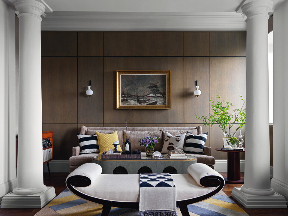 Она характерна для 1930‑х годов, и хозяин ее практически не изменил. Он переделал только блок с ванной и туалетом, выкроив на месте бывшего коридора, ведущего в кухню, пространство для хозяйственного помещения. “Планировка была удачной: квартира-распашонка с центральным холлом и двумя анфиладами. Пропорции комнат и архитектурных элементов тоже оказались идеальными”, — рассказывает Марсель. В гостиной часть пространства отделена колоннами, которые образуют альков. Архитектор воссоздал карнизы и другие детали, подсмотрев их в сборнике типовых элементов оформления советского жилья. Вообще в интерьере было много интересных решений, например геометричная расстекловка дверей, ведущих в кабинет. “Она была похожа на ардекошную, и это выдавало в целом экспериментальный характер архитектуры этого дома, — говорит Искандаров. — Я собирал о нем информацию и выяснил, что, несмотря на небольшое количество квартир, тут было двенадцать разных видов планировок, и многие с колоннами. Мы подали документы на признание дома памятником архитектуры”.