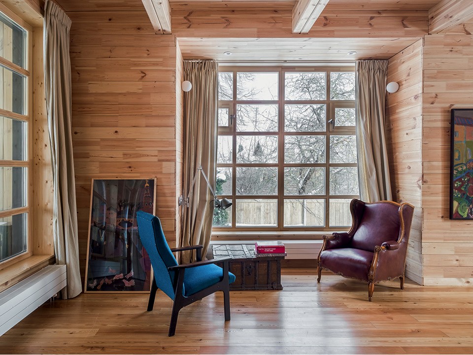 Вокруг Москвы много мест, которые притягивают творческих людей, и живописная Таруса — одно из них. Тут вдохновлялись и творили Марина Цветаева, Константин Паустовский, Василий Поленов, Виктор Борисов-Мусатов, Константин Коровин и Василий Ватагин и до сих пор живет много художников, скульпторов и писателей. Владельцы издательства “Мелик-Пашаев”, выпускающего детские книги, решили обзавестись дачей именно в этом районе. Сергей и Мария Мелик-Пашаевы купили участок с домом и доверили Алексею Дунаеву, основателю архитектурного бюро “ПРОЕКТ905”, его реконструкцию. Однако для размещения всех членов большой семьи пространства все же не хватало, поэтому через некоторое время они задумались о строительстве второго, более просторного дома. “Хозяйка сразу сказала, что хочет то, чего не бывает: комфортную современную постройку, которая выглядит так, будто стоит тут уже давно”, — говорит Алексей. Так появились двускатные крыши и окна с переплетом, а идея для крытой террасы на втором этаже была подсмотрена в доме-музее Василия Ватагина. “Перед тем как приступить к проектированию, мы ходили на экскурсию. Мария — художница и обустроила себе здесь мастерскую на свежем воздухе”, — объясняет архитектор.