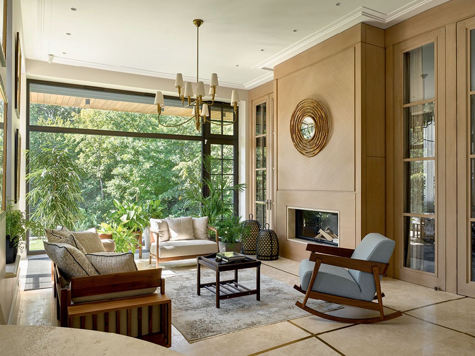 Дмитрий и Татьяна Хорошевы оформили дом близ подмосковной усадьбы Покровское-Рубцово, наполнив его антиквариатом и современной мебелью.
