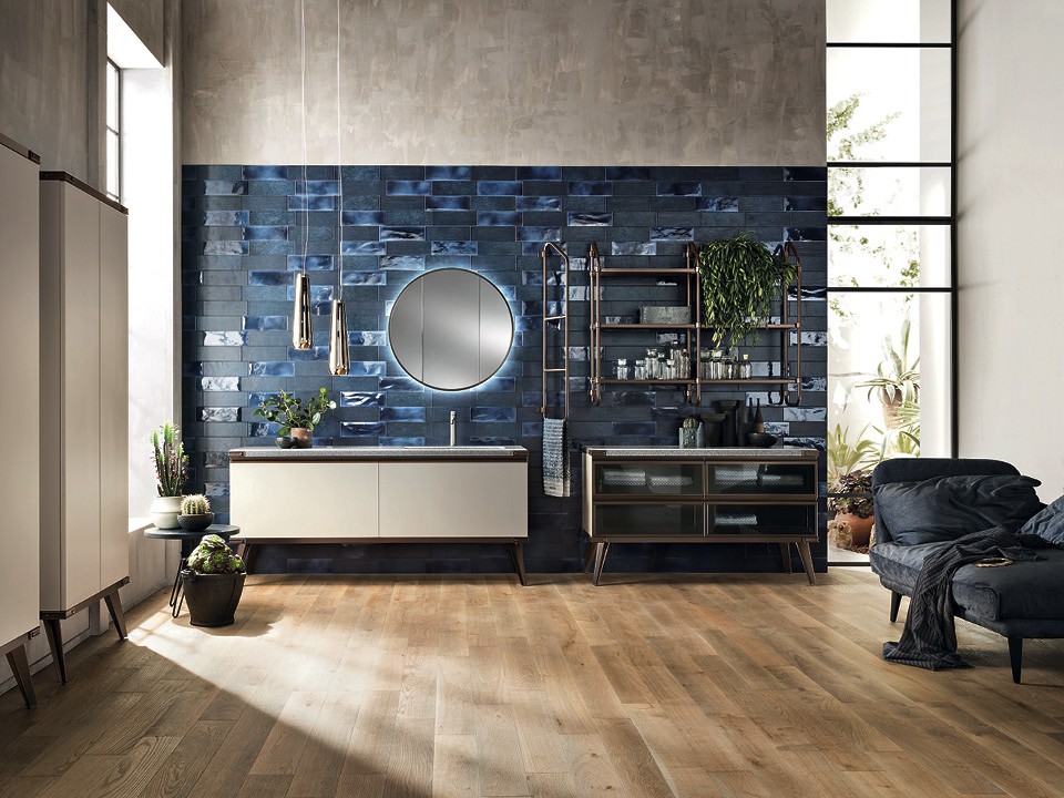 Тем, кому категорически не нравится классика, а минимализм порядком надоел, стоит обратить внимание на новую коллекцию мебели для ванных комнат, созданную компанией Scavolini совместно с Diesel Living. Дизайнеры воплотили идею индустриального шика в обыденных предметах — в коллекцию вошли тумбы под раковину, шкафчики, этажерки, держатели для полотенец, полки и зеркала. Основной материал в коллекции — металл, из него, к примеру, сделаны этажерки Stock Rack, которые каждый может скомпоновать под свои нужды: есть варианты разной высоты, с боковыми ограждениями и без них. Вариантов отделки тумб под раковину и шкафов тоже немало — от обычных меламиновых до рифленого стекла в металлической рамке. Дизайнеры решили превратить в место для хранения даже зеркало — в модели Lunar Stock удобно разместить предметы личной гигиены. Коллекцию Diesel Open Workshop отличают темные оттенки и необычные подсветки. Например, в стеклянные панели бронзового оттенка вмонтированы зеркала Lunarcon с освещением по периметру: отражаясь от стекла, свет получается мягким и уютным.