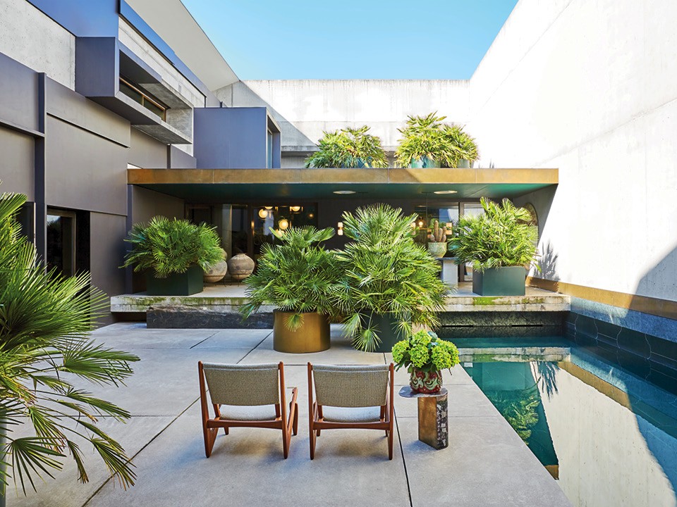 С домом на окраине Милана все вышло несколько иначе. Для поклонников искусства и винтажных предметов мебели XX века Де Котис проектировал здание с нуля. Заказчики хотели, чтобы близкое расположение соседских домов не мешало им сохранять приватность. Так, архитектор решил создать довольно брутальное бетонное сооружение, которое при этом всегда было бы наполнено естественным светом и воздухом. Это на первый взгляд отклонение от предыдущих работ Де Котис объяснил так: “В данном случае у нас не было никакого исторического следа. Форму здания определили участок и предпочтения клиентов”. Задача стояла создать такую архитектуру, которая бурлила бы жизнью изнутри и при этом снаружи казалась невозмутимой, неприступной. Получился современный бункер, который наполнен теплом и комфортом.
