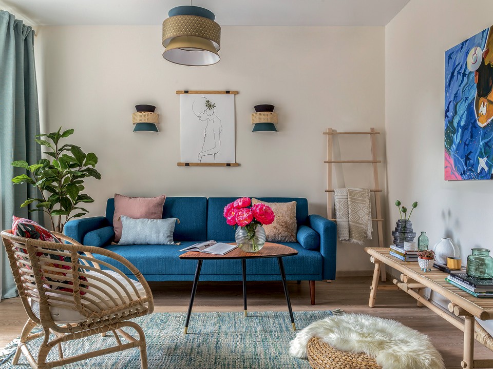 Однушка в самарском доме 1973 года постройки была куплена “на вырост”: у хозяйки уже есть загородный дом и квартира в соседнем подъезде, а эту она купила для дочери, которая через несколько лет созреет для самостоятельной жизни. Оба упомянутых жилища для этой женщины оформляла Евгения Шимкевич, ей же довелось поработать и над этим проектом. “Прошлой осенью, еще перед покупкой, заказчица попросила посмотреть с ней эту кроху, — вспоминает дизайнер. — Мне квартира очень понравилась, хотя я понимала, что нужно всё сносить, вскрывать и переделывать. Но в старом фонде так обычно и бывает”. Прошлое квартиры не исчезло без следа — дизайнер с заказчицей успели заметить и оценить следы старой краски на полуразрушенных стенах. В новом интерьере использованы те же цвета — салатовый, небесно-голубой и горчичный. Сохранилось также окошко между кухней и ванной, хотя стена между ними построена заново.