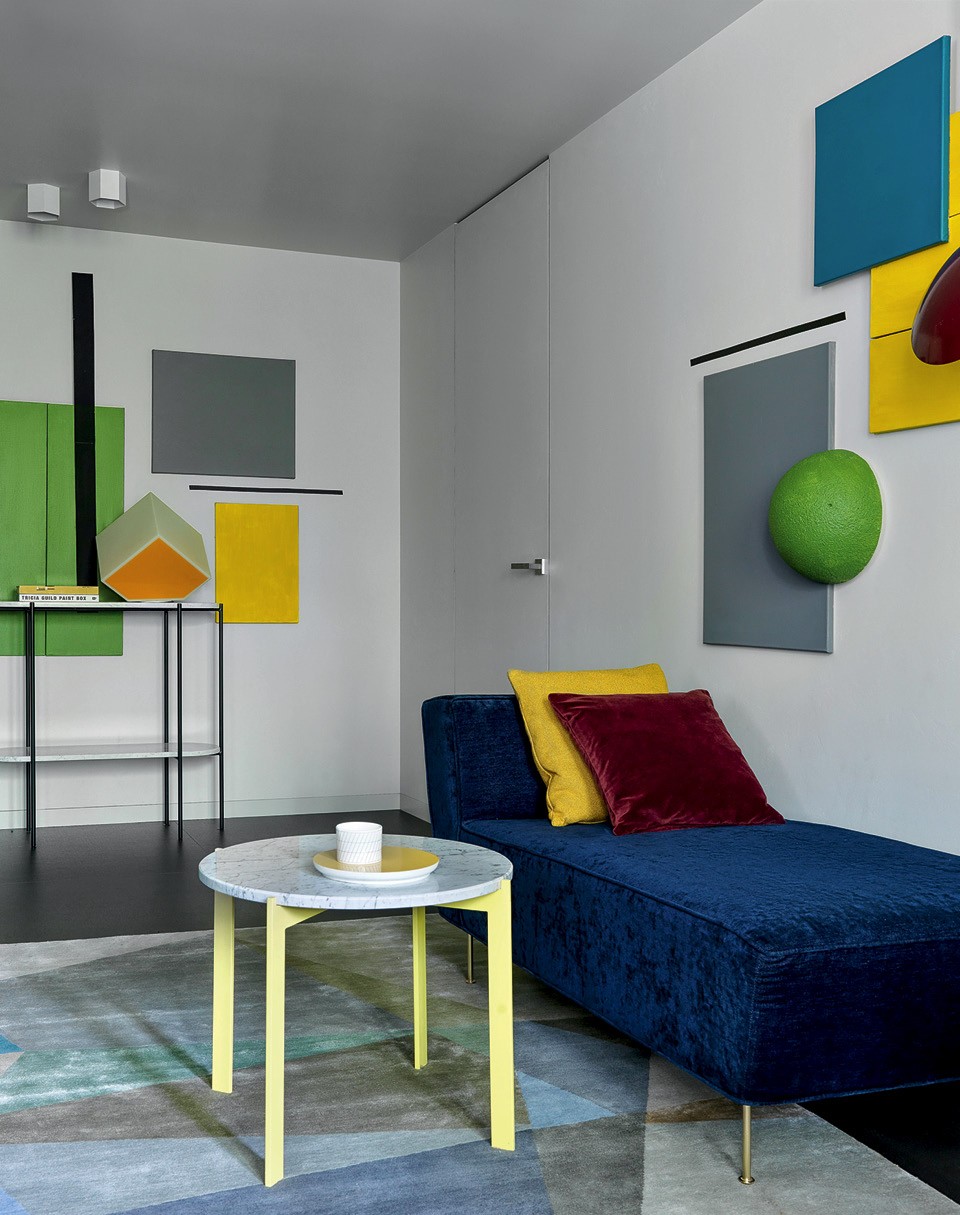“В этой квартире молодой заказчицы главное для нас — объемно-пространственная конструкция, которая и позволила сделать небольшое помещение просторным”, — говорят Елизавета Голубцова и Марина Бирюкова, основательницы архитектурного бюро BIGO. Перепланировка московской квартиры в доме 1960‑х годов получилась действительно необычной: дизайнеры объединили кухню, гостиную и прихожую, а между ними образовался куб с ванной комнатой и постирочной, по двум сторонам которого расположены шкафы. Это позволило избавить пространство от лишних стен, из-за которых квартира смотрелась бы как будто “нарезанной” на маленькие блоки. Избежать этого помогло и световое оформление: светильники в форме шестигранных призм разбросаны по потолку без четкой привязки к стандартным зонам. У квартиры есть и еще одна особенность: гости, которые впервые попадают в нее, часто думают, что здесь нет спальни. Хозяйке хотелось, чтобы это помещение стало максимально приватным и своеобразной тайной комнатой, поэтому дизайнеры скрыли ее от посторонних глаз. Вход находится за зеркалом во вместительной гардеробной.