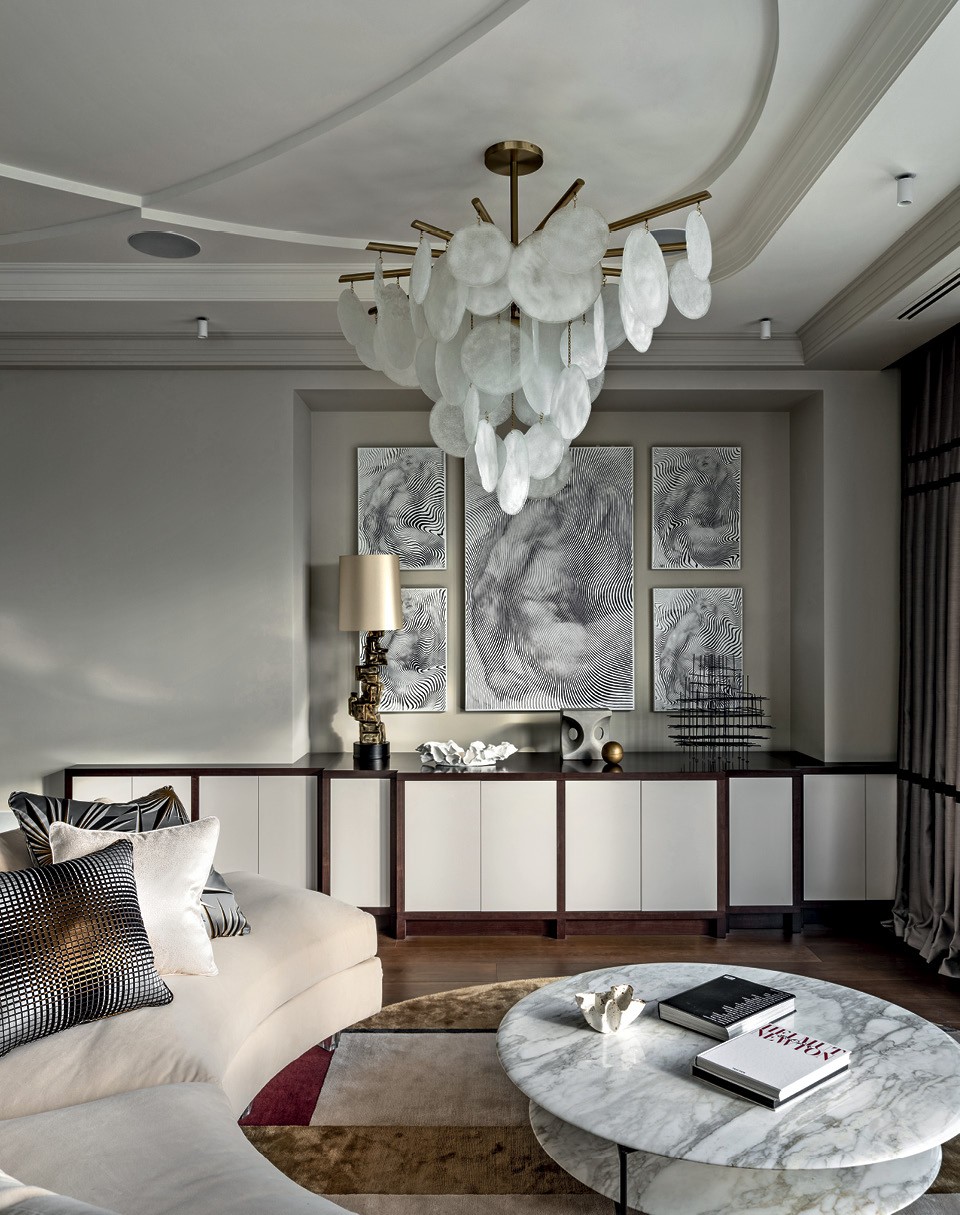Дизайнеру Олимпиаде Арефьевой удалось гармонично соединить в одном интерьере геометричные формы и сложные принты.