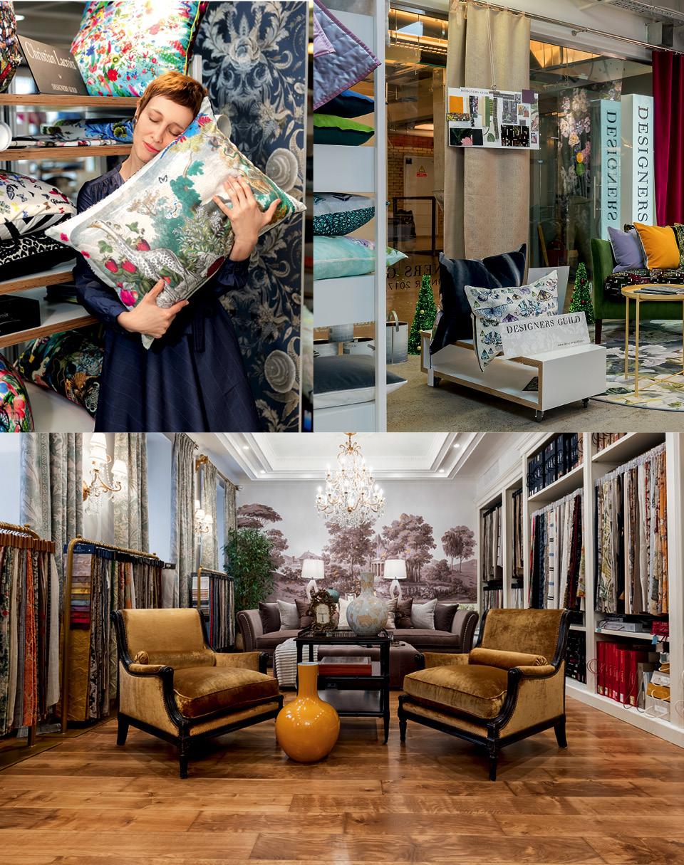 Двухэтажный салон в центре Москвы, где представлены разные ткани, мебель и аксессуары.