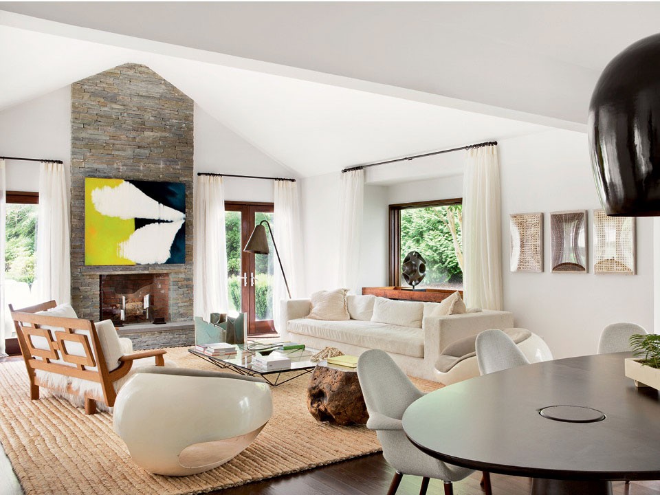 За пятнадцать лет Джули успела сделать приличную карьеру в дизайне, и вот подруги снова встретились на проекте: переделок потребовал загородный дом в местечке Амагансетт в Ист-Хэмптон на Лонг-Айленде. “Здание уже было спроектировано и построено, — объясняет дизайнер. — Бывший владелец был строителем, но обанкротился, и ему пришлось продать дом. Делал он все для себя, поэтому материалы здесь самого высокого качества”. Дом довольно типичен для здешних мест: выкрашенный в белый цвет сайдинг и черепичная крыша. Одноэтажная постройка окружена большим густым садом и занимает площадь в 750 м². Хозяйка рассчитывала приезжать сюда со своими детьми.