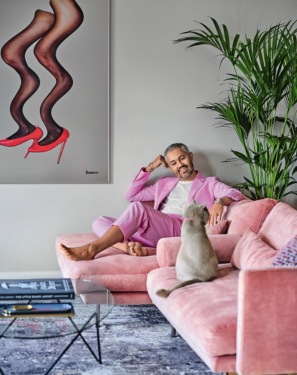 Задуматься о смене места жительства Александра Рогова заставил гардероб. “Мне не хватало места, одежда лежала на стульях и подоконниках, я понимал, что надо переезжать”, — вспоминает стилист. Однако случилось все спонтанно: Александр наткнулся в интернете на рекламу нового жилого комплекса, решил изучить, что там продают, и в итоге купил трое апартаментов. “До того как мы их объединили, я не видел пространство целиком и даже немного волновался, что все не поместится, — рассказывает хозяин. — Мне важно было поселиться на последнем этаже, чтобы над головой никто не ходил, и я искал квартиру с нюансом. Здесь, к примеру, есть два окна, через которые можно попасть на крышу”. Решить, какому пространству их отдать, было непросто, но положение спасла анфиладная планировка с коридором вдоль окон. Она позволяет пройти по всей квартире и выйти на обустроенную крышу, не попадая в личные зоны хозяина. При таком раскладе спальня и гардеробная получились в глубине, и, чтобы не лишать эти комнаты дневного света, их отделили перегородками из стекла.