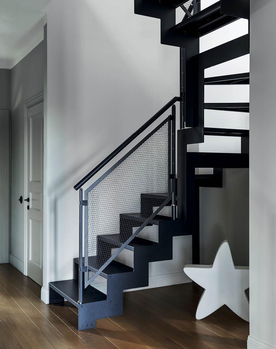 Найти в Москве квартиру с мансардой — большая удача, и Валерии повезло: сейчас она с семьей живет на последнем этаже сталинского дома, в одном из корпусов известных многим “красных домов”. Предыдущие хозяева присоединили к типовой трешке технический этаж и подвели дополнительные электрические мощности. “Это позволило отказаться от газа и изменить конфигурацию пространства с учетом наших личных предпочтений”, — продолжает дизайнер.