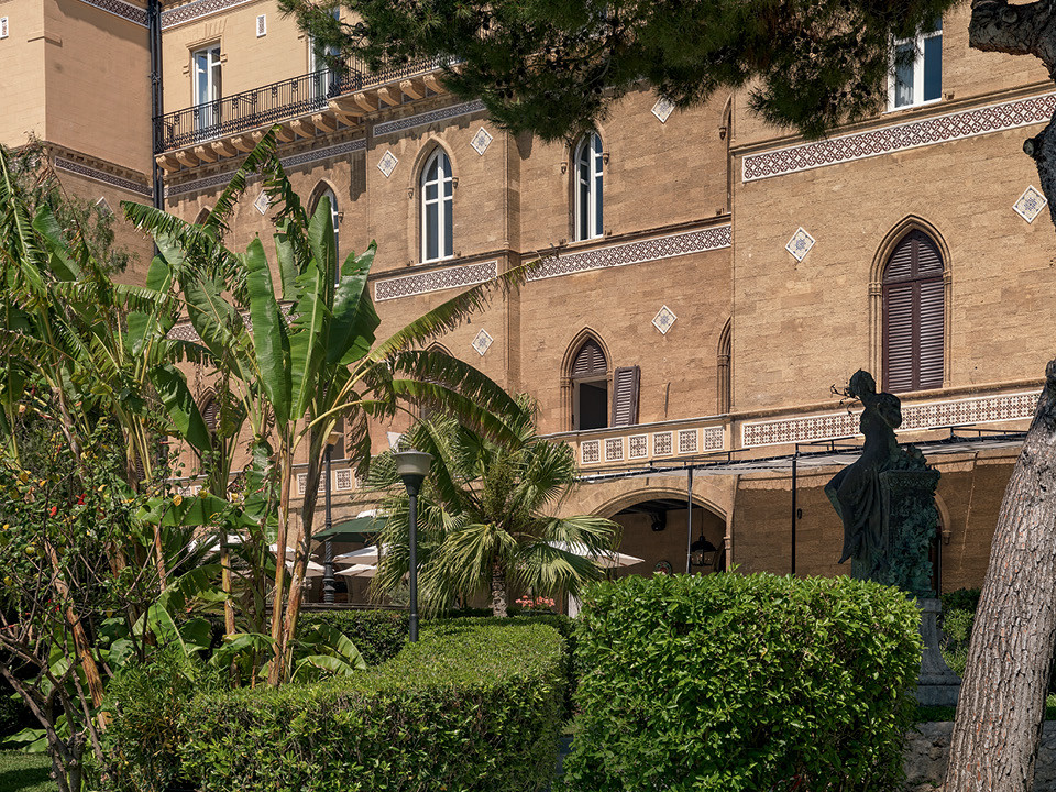 Он пригласил известного местного архитектора Эрнесто Базиле, чтобы тот перестроил виллу под нужды отеля. Интерьеры Базиле тоже разработал сам — в своем любимом и невероятно модном тогда стиле либерти. В публичных зонах отеля очень много мебели, которую по эскизам Базиле изготовили на фабрике Studio Ducrot. Архитектор позвал итальянских художников Джованни Энеа и Этторе де Марию Берглера, чтобы они расписали общие залы. Сейчас их работу можно увидеть в “зале Базиле”, он полностью сохранился.