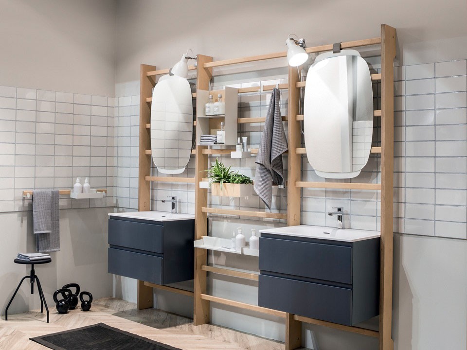 Что общего между ванной комнатой и спортзалом? До недавнего времени не было ничего. Но итальянский дизайнер Маттиа Парески решил это изменить: он понял слово “функциональный” дословно и интегрировал мебель для ванной в шведскую стенку. Так появилась на свет коллекция Gym Space, которая выпускается под брендом Scavolini Bathrooms. По сути, это конструктор, основной элемент которого — гимнастическая стенка. На нее в нужном количестве навешиваются шкафы, зеркала, светильники, полочки для косметики и крючки для полотенец, а также спортивное оборудование. Например, турник, эластичные ремни или петли TRX. Можно даже установить скамью для пресса. Пока все элементы выпускаются в двух цветах: база может быть оттенка фанеры или антрацита, а навесные модули и полки — черные или белые.