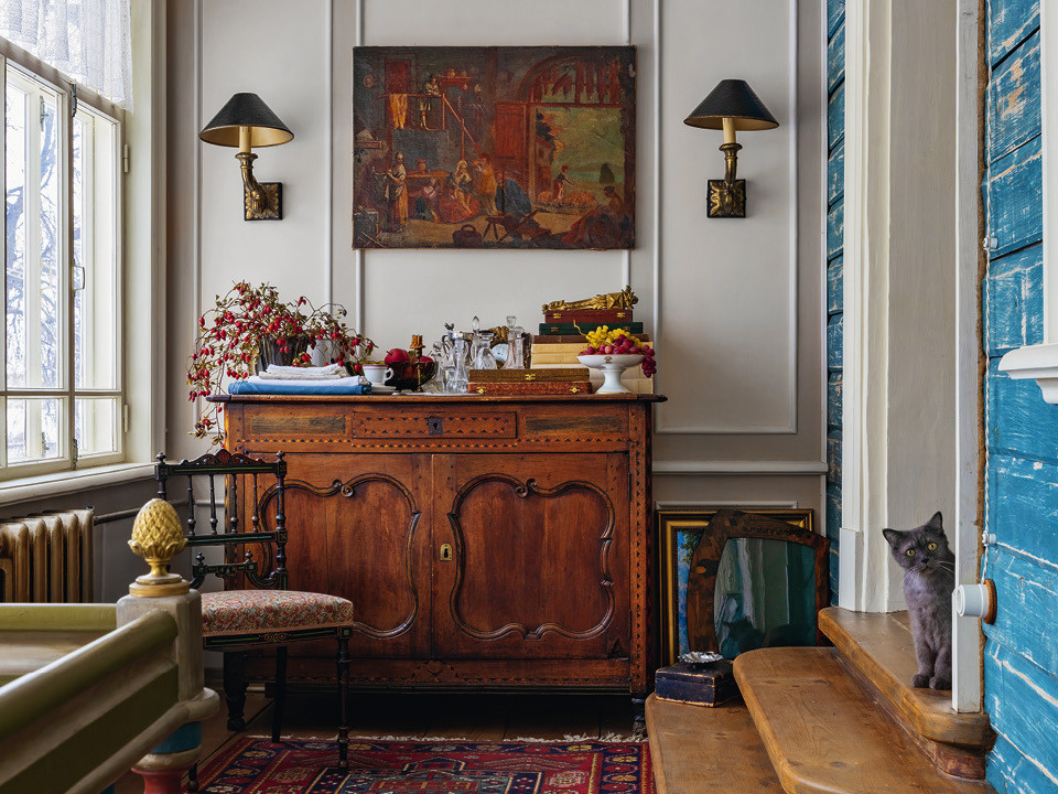Дом оказался непростой, “с родословной”. Для Светланы и ее мужа, которые любят русскую культуру и историю, это была находка. Для объективности они посмотрели еще несколько вариантов, но вернулись к первому. “Это был деревянный купеческий дом, построенный во второй половине XIX века, сильно потрепанный, но с сохранившейся оригинальной планировкой и историческими элементами декора. Здесь родился и жил известный художник Ярославской области Ростислав Галицкий, поэтому дом долгие годы был культурным центром Ростова”, — рассказывает Светлана.