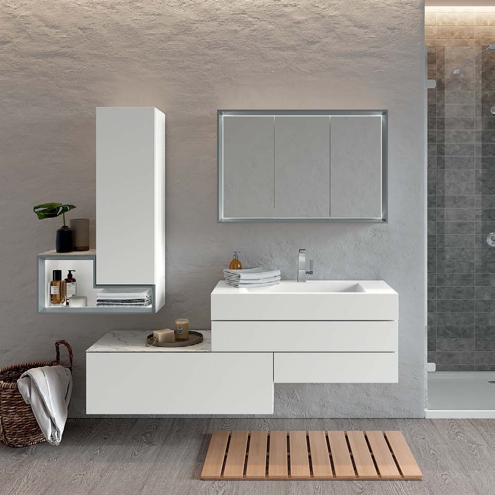Идея, что ванная — такая же комната в доме, как и любая другая, уже не нова. Но теперь она получила неожиданное развитие. В этом году немецкая компания Hülsta представила на выставке ISH во Франкфурте-на‑Майне две дебютные коллекции мебели для ванных комнат — Tetrim и Gentis. Обе разработаны на базе уже существующих моделей для гостиной, столовой и спальни. От своих “родителей” Tetrim унаследовала минималистичные фасады без ручек и подсветку по периметру открытых полок и зеркал, а Gentis — богатую палитру глянцевых и фактурных деревянных отделок, которые можно комбинировать между собой, а также вмонтированную в корпус рамку со светодиодами. Когда она включена, создается впечатление, что консоли и тумбы парят в воздухе.