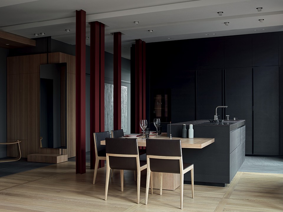 “У меня всегда копятся идеи, которые греют душу, но я понимаю, что шансов реализовать их в пространстве московского рынка мало”, — продолжает архитектор. Однако с хозяйкой квартиры в новом доме, построенном в Даевом переулке по проекту бюро “Цимайло Ляшенко и партнеры”, у Валерии случилось почти стопроцентное совпадение вкусов, вплоть до общей любви к чаю марки Tea Forté. Ей были по душе и темная цветовая палитра, и даже кресло по дизайну Патриции Уркиолы — угловатое, массивное, оно безумно нравится Лере, но пугало других ее заказчиков.