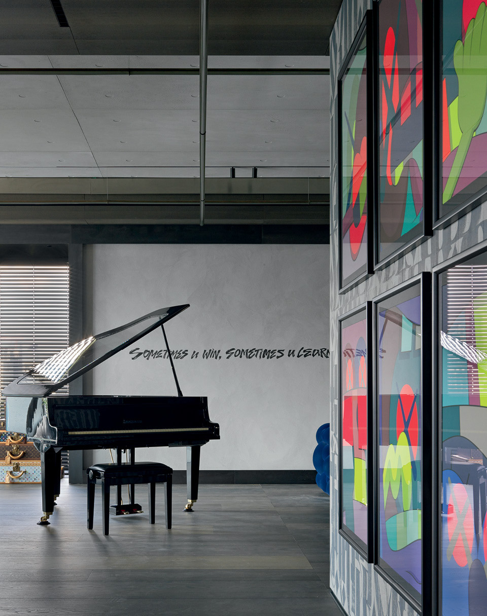 “Я собираю современное искусство уже больше десяти лет, и сейчас коллекция такая большая, что в квартиру все не влезло и часть находится в хранилище, — рассказывает Тимур Юнусов. — Но, может, я открою галерею, чтобы показать свои сокровища широкой публике”. Его новая квартира площадью 650 м² занимает два этажа, соединенных лифтом: внизу находятся спальни детей, а сам он живет на верхнем. Оформлять резиденцию артиста взялись Артур Шарф и Артем Зверев из YoDezeen, которые познакомились с Тимати через общего друга. “Тимур попросил сделать для него ультрасовременное пространство, которое будет наполнять его энергией и подзаряжать, — говорит Артур. — Здесь все спланировано непривычно: например, на верхнем уровне площадью почти 400 м² всего две спальни, а большую часть пространства занимает гостиная”. Дизайнеры придумали сделать что-то вроде лофта, но не небрежного, а проработанного до миллиметра: материалы идеально отшлифованы, состыкованы и продуманы, здесь нет ни одной лишней детали, а все внимание направлено на искусство, даже светильники оснащены специальными фотолинзами, подобранными под каждую работу.