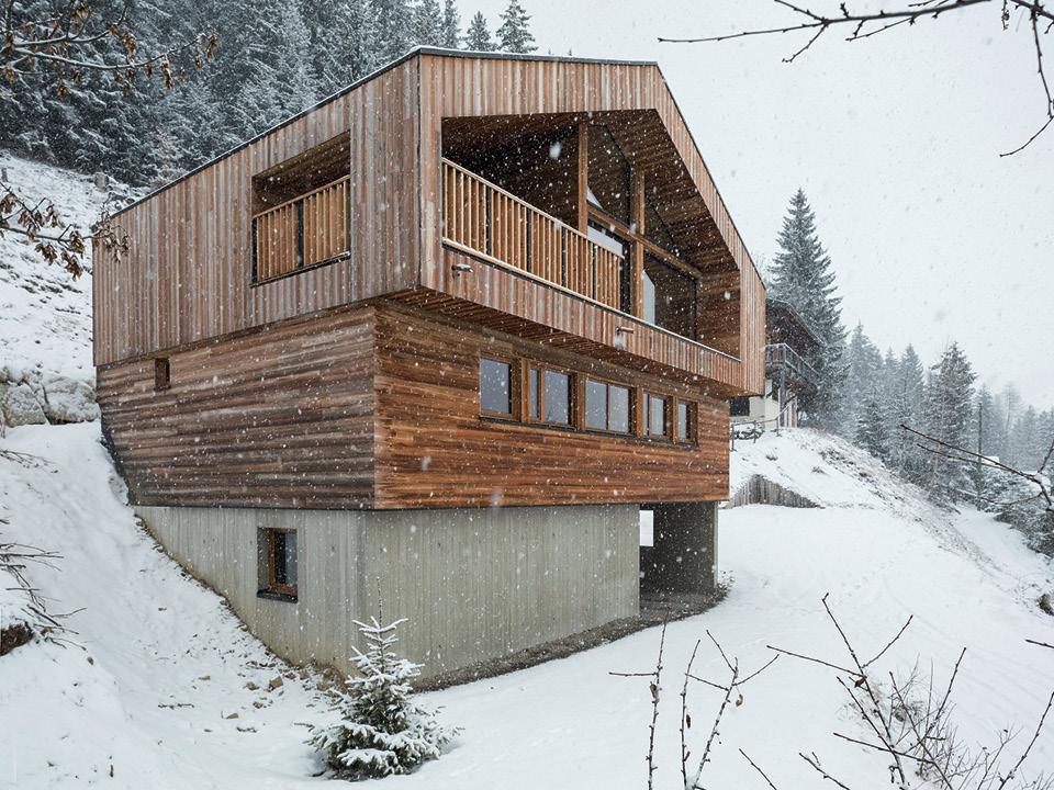 Собственно, иначе и быть не могло: даже созданный с “вниманием к истокам” проект прошел тернистый путь выдачи всевозможных разрешений и согласований. А от архитекторов потребовалось продемонстрировать местным властям, что их дизайн, несмотря на современность, не отрицал исторического наследия этого альпийского региона. В итоге эти процедуры вылились в довольно интересное упражнение. Сотрудникам студии пришлось доказывать чиновникам, что их идеи действительно основывались на тех самых традиционных принципах: используются местные материалы, верхние части дома выполнены из дерева, присутствует скатная кровля и так далее.