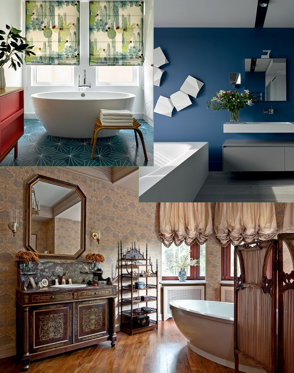 В оформлении ванных наметились две важные тенденции: люди всё чаще хотят отдельно стоящую ванну и чтобы обстановка вокруг напоминала обычную жилую комнату. Как это сделать, смотрите в нашей подборке.
