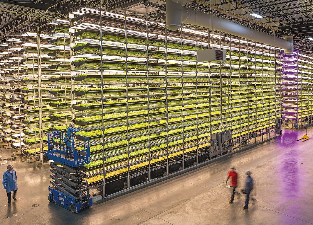 Вертикальное фермерство — молодое направление сельского хозяйства, которое начало активно развиваться с 2011 года. Такие производства усиленно применяют инновационные технологии. С помощью интернета вещей и искусственного интеллекта на подобных предприятиях полностью автоматизированы полив, система освещения, внесение удобрений и сбор урожая. Вместо почвы используются питательные растворы на разных основах: воде, отходах жизнедеятельности рыб и креветок и т. д. Основная выращиваемая продукция — это зелень премиальных сегментов и салаты, например руккола и базилик, а также клубника, овощи и грибы. Чаще всего вертикальные производства создают в городских условиях, отсюда и второе название — сити-фермы.
