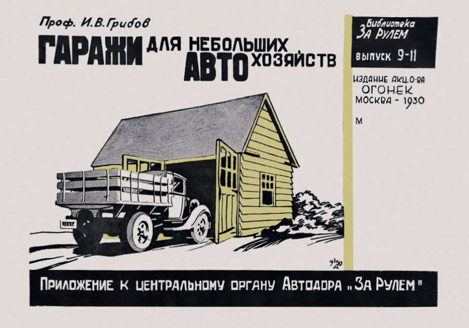 Для того чтобы убедиться в том, что гараж в СССР и постсоветской России явление мультикультурное, вовсе необязательно идти на выставку, которая вот уже несколько месяцев с успехом проходит в Музее Москвы. Надо просто было немного пожить в то время. Гараж был не только местом хранения и ремонта автомобиля. Но и складом урожая с приусадебного участка, мужским клубом по интересам, здесь можно было спрятаться от повседневности и предаться дзену. И что особенно важно, понимали это не только тогда, когда счастливые обладатели гаражей эксплуатировали их по всем вышеупомянутым профилям, но и почти сто лет назад, когда автомобили в стране практически не выпускались, а в частном владении встречались крайне редко. Не верите? Мы тоже не верили, пока в руках у нас не оказалась книжка профессора И.В. Грибова «Гаражи для небольших автохозяйств» – приложение к журналу «За рулем», выпущенное в 1930 году.