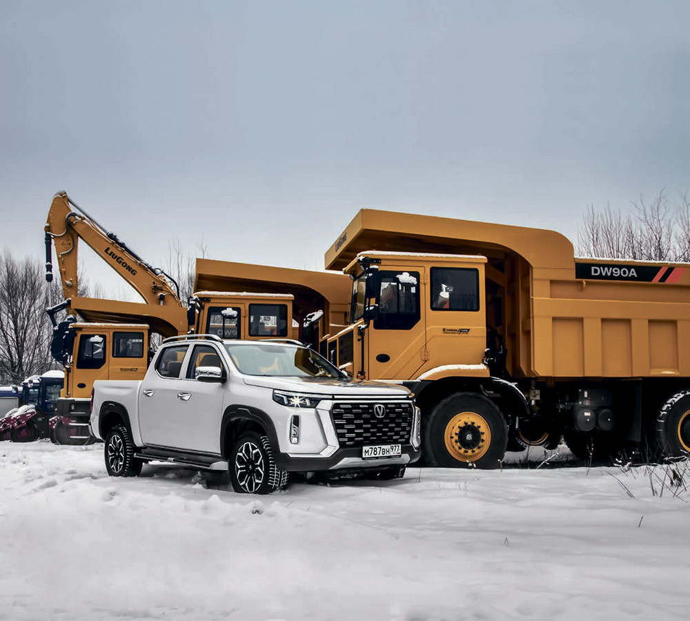 Огромная вялотекущая пробка через дорожные работы. Неприятность эту мы переживем. Changan Hunter Plus один из самых комфортных пикапов нашего рынка, хотя бы и тащишься в заторе. Глазею на рукастые экскаваторы и задаюсь вопросом, сколько комфорта нынче у строительных машин. Новые, что сюда поставляются, тоже ведь китайские. Любопытно сравнить.