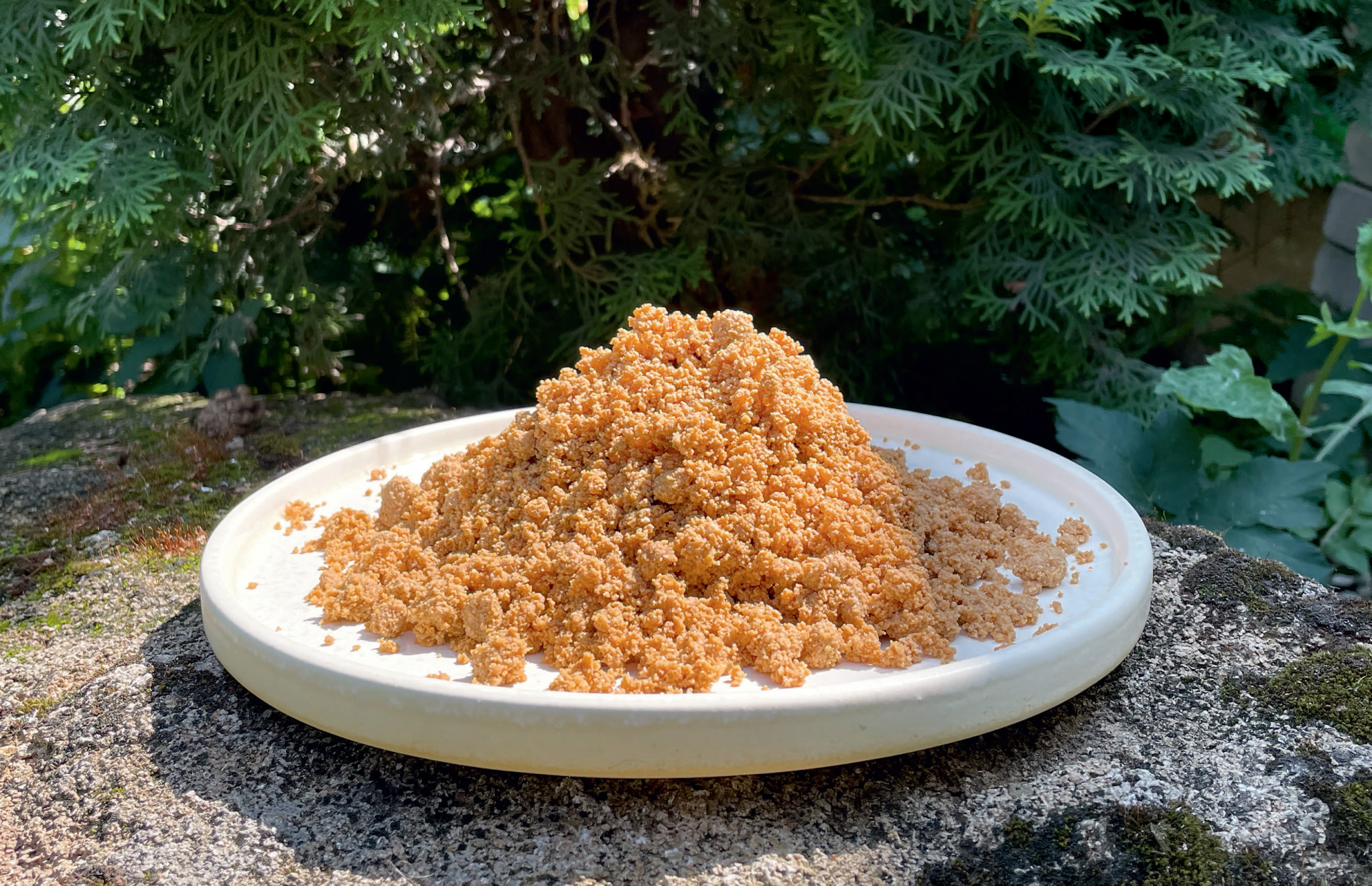 Корт для меня — не просто продукт, а инструмент для развития татарской гастрономии. Я увидел в нем широкий диапазон применения — от закусок до десертов и даже элемента декора. У меня в арсенале есть десерт «Съедобные камни с ароматом полевых трав», здесь я использую корт как подложку, олицетворяющую прибрежный волжский песок.