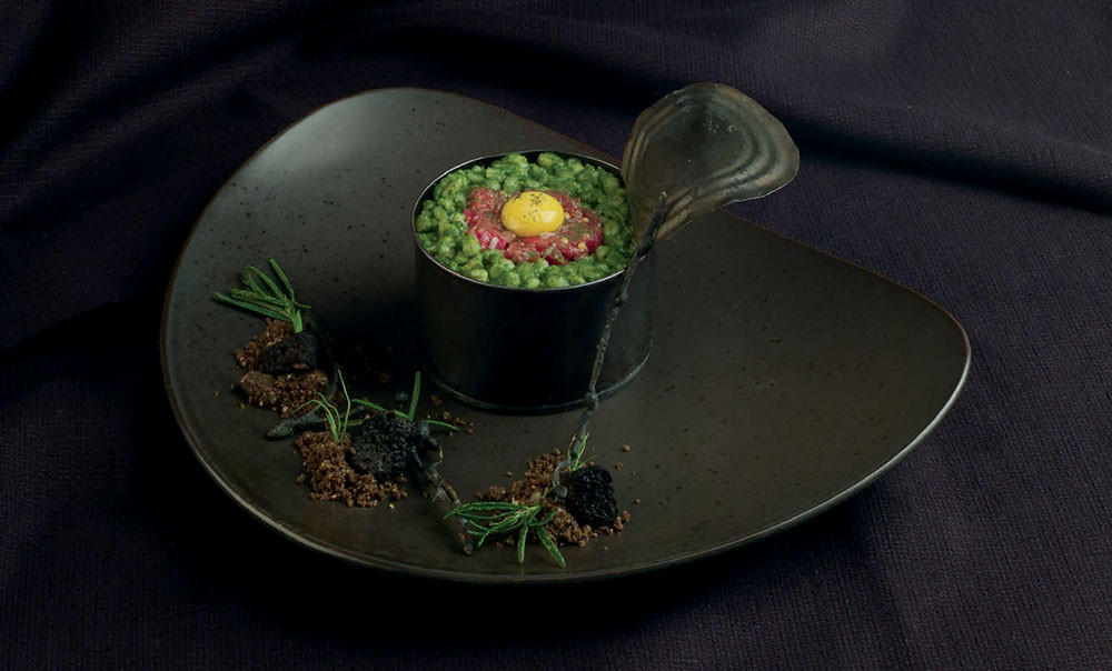 С годами эта тема только усиливалась, и в COCOCOUTURE мы уже практически для каждого курса делали посуду, которая раскрывает идею блюда, становится его логичным и неразрывным продолжением, вызывает у гостя эмоции — умиление, ностальгию, у кого-то всплывают на поверхность личные воспоминания. Тут все построено на ассоциациях, и зачастую блюдо, как мозаика, складывается из определенного визуального образа, какого-то вкусового сочетания, может быть, даже некоего ритуала, который выполняется непосредственно перед гостем. Как, например, с «Камеей». В резной тарелке-броши — крем-брюле с бурбонской ванилью, сверху тонкий женский профиль — бланманже, русский десерт с французскими корнями, представляющий собой желе из горького миндального молока. И финальная нота — воздушное облако розовой воды, которой официант опрыскивает десерт при подаче гостю из флакона для духов родом словно из XIX века.