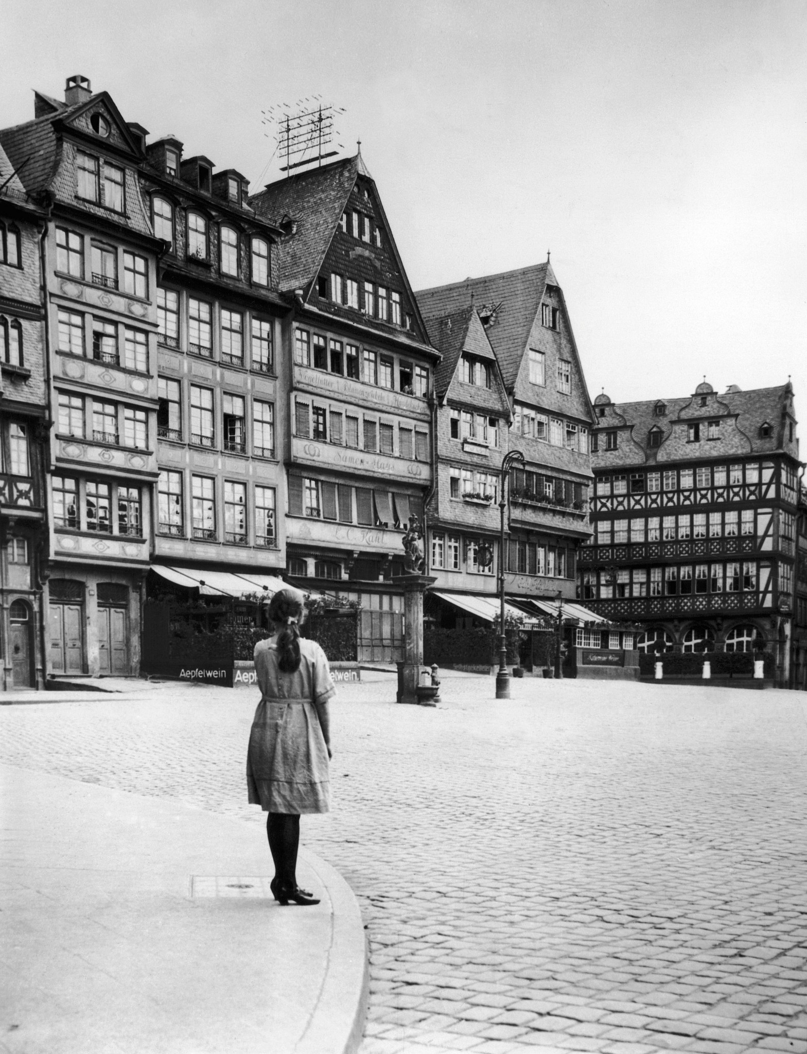 Когда-то район ратуши Рёмер был очень оживленным. Там проходила Королевская дорога, по которой король со свитой следовал к собору для коронации и оттуда к площади Рёмер. В конце Второй мировой войны центр города был разрушен бомбежками. В 1963 году власти города объявили конкурс проектов застройки зияющего пустыря. Новое здание ратуши должно было угодить франкфуртцам: помимо чисто технических функций административного центра оно должно было вместить библиотеку, музей, музыкальную школу, отель и т. д. В конкурсе участвовали именитые архитекторы из Франкфурта, Ганновера и Вены. Но победу жюри присудило молодым франкфуртцам из бюро Bartsch-Thürwächter-Weber. Их проект деликатно обращался с исторической средой и не вызывал протестов горожан.