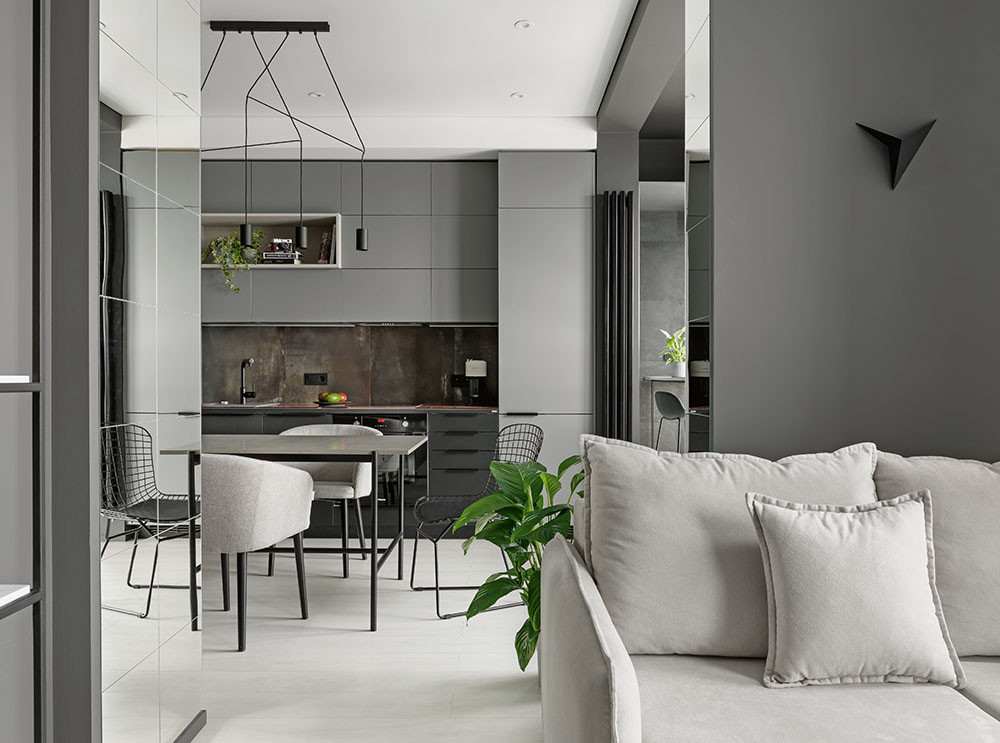 Психологами отмечено, что окружающее пространство оказывает на нас серьёзное влияние. Бардак в доме угнетает, впрочем, как и нахождение в замкнутом объёме. И поскольку доход у всех разный, вся надежда на дизайн и архитектуру. Идея этого проекта как раз и состояла в переосмыслении стандартной площади 40 м2 в новостройке и создании для заказчицы гармоничной среды обитания, «увеличенной» за счёт новаторских решений.