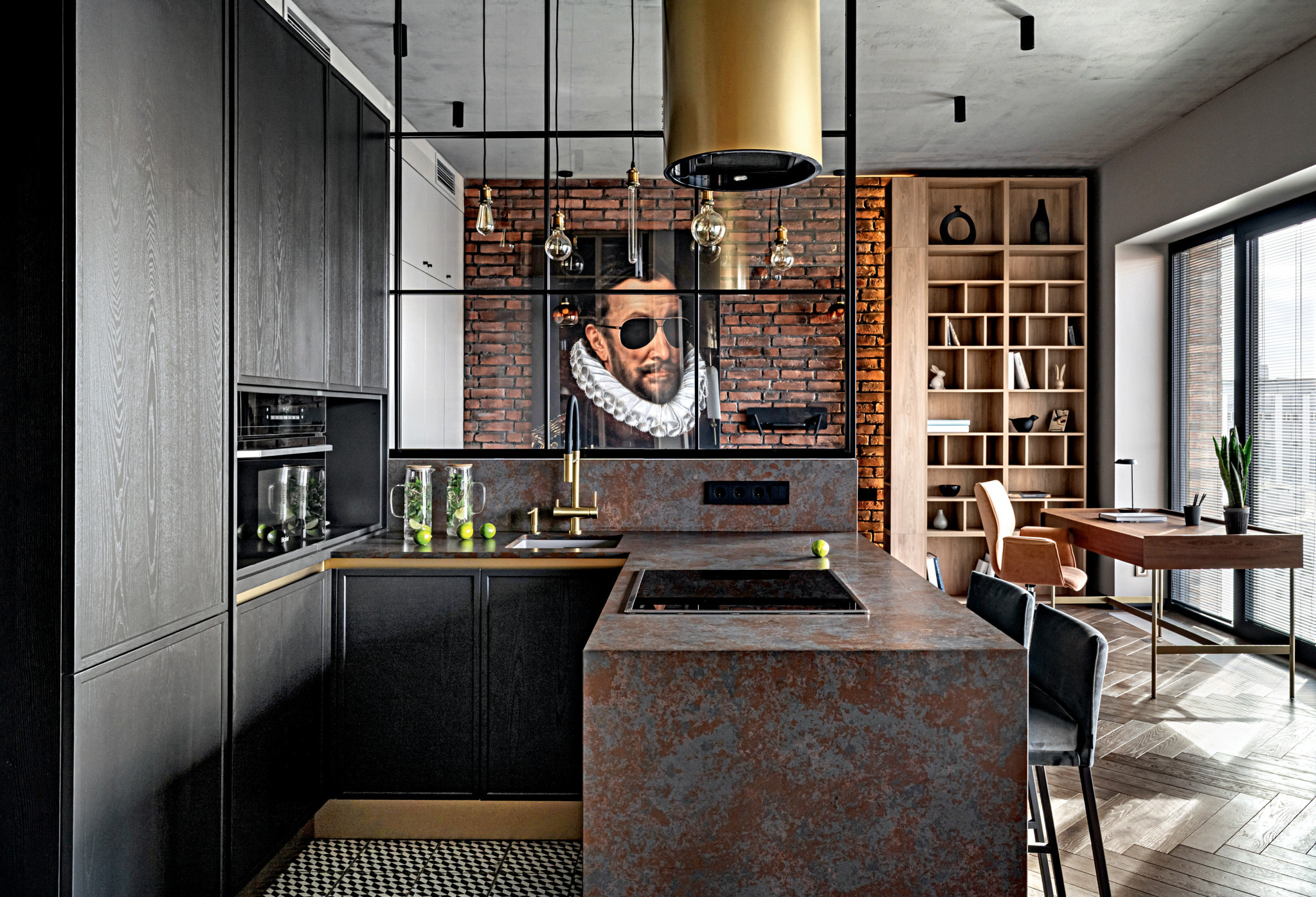 Новый жилой комплекс Docklands, в котором расположена квартира, построен в индустриальном стиле по проекту немецкого архитектурного бюро. Панорамные окна выходят на городскую застройку. Элементы экстерьера дома получили логичное продолжение в оформлении интерьера в стиле лофт. Заказчик — молодой человек, работающий в сфере IT, — обратился за созданием пространства «для себя»: брутального и в то же время уютного и тактильного интерьера с претензией на элегантную роскошь.