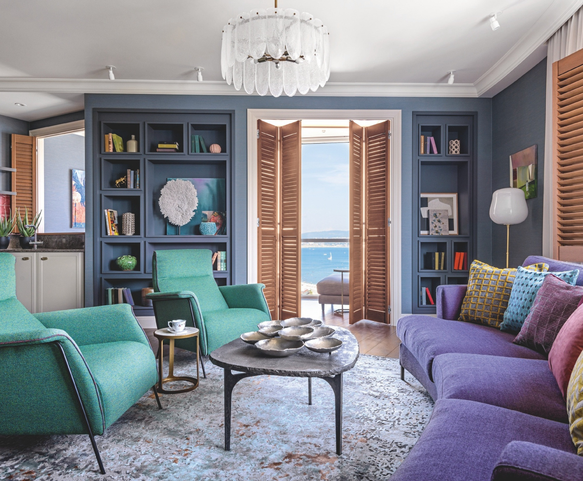 Внимательно прислушавшись к пожеланиям заказчиков относительно «места для релакса», архитектор-дизайнер придумала интерьер, способный подарить прохладу и комфорт даже в самые жаркие дни. И хотя в нём почти невозможно найти прямые «цитаты» из курортного окружения, источником вдохновения для автора проекта стали атмосфера морского побережья и эффектный панорамный вид на бухту.