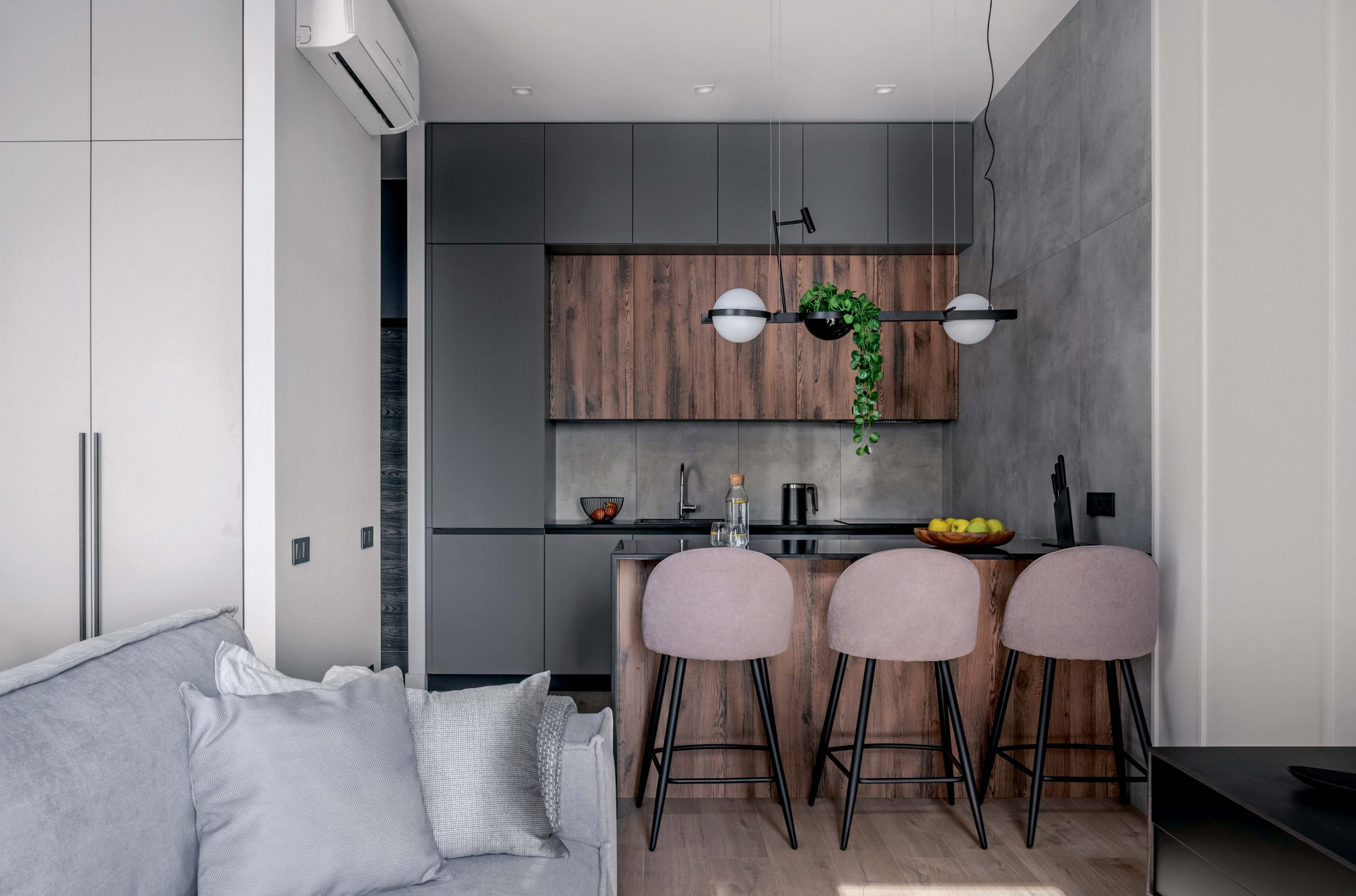 Эргономичная планировка, выразительные фактуры, нейтральная гамма и лаконичные интерьерные решения — всё это полностью отвечает современной эстетике оформления. У дизайнера получилось спроектировать стильное пространство с интересными деталями, не прибегая к дорогим и сложным в исполнении идеям