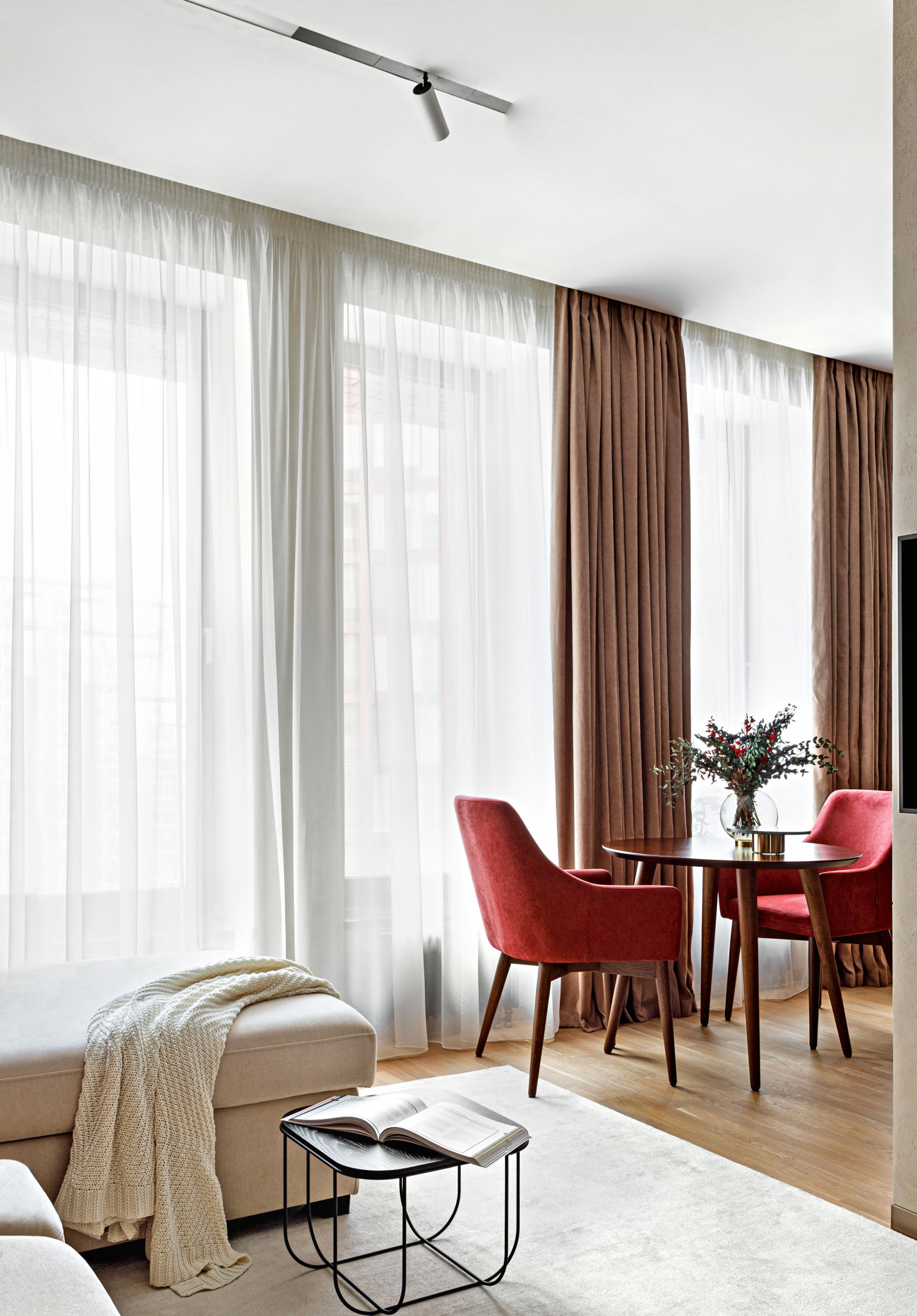 Владелец квартиры — девушка, занятая в сфере финансов, которой хотелось получить эргономичное, располагающее к отдыху пространство, отвечающее всем современным требованиям. Этому в полной мере соответствовало жилище в комплексе Vander Park, состоящем из монолитно-кирпичных домов бизнес-класса. Квартиры в так называемом голландском квартале отличаются высокими потолками (до 3,4 м), большими окнами и новейшими коммуникациями.