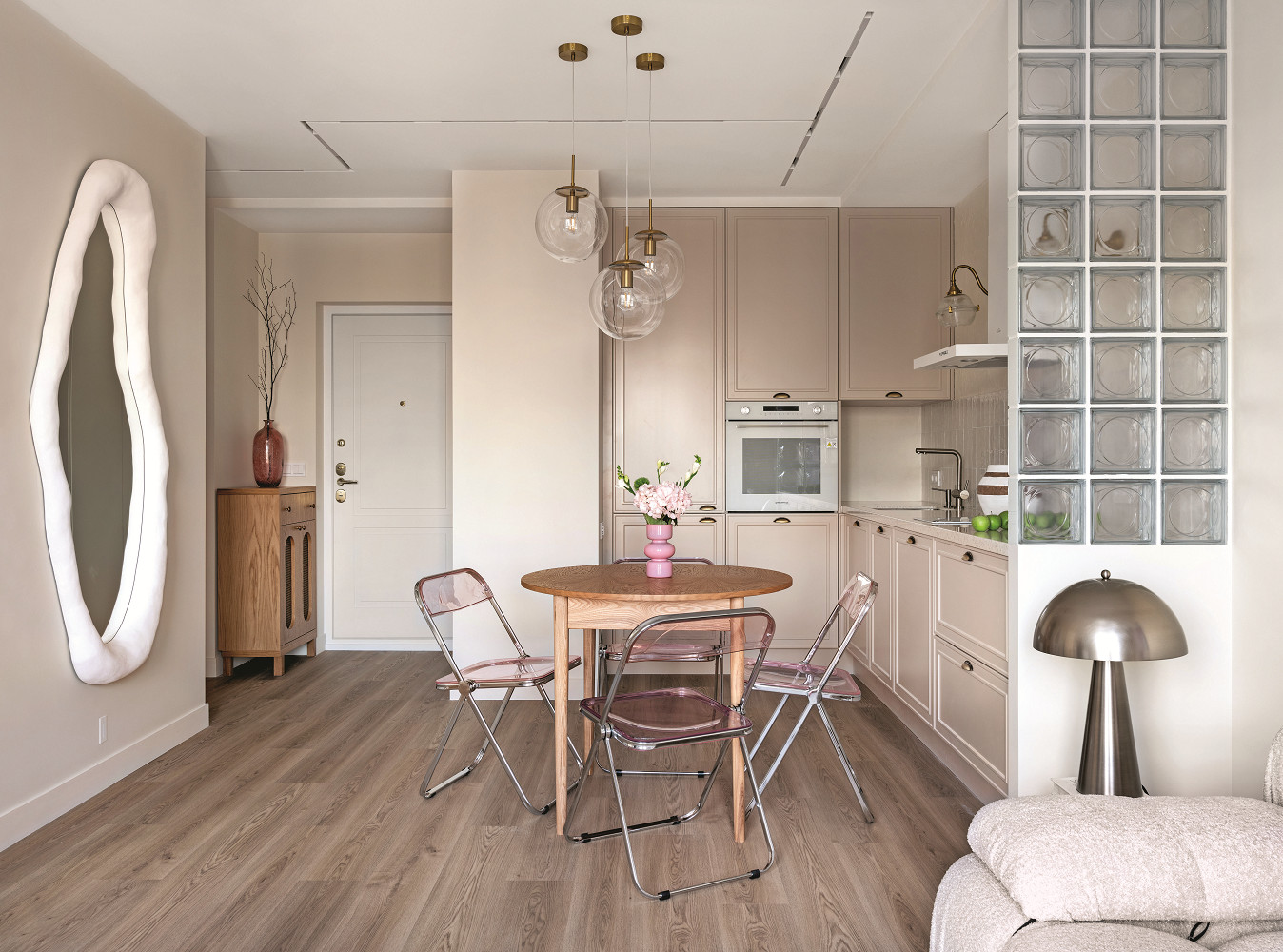 Первая собственная квартира в начале самостоятельной жизни — особый жанр. Эту квартиру Ольга Цурикова спроектировала для молодой девушки — будущего архитектора. Получилось не просто комфортное, а ещё и очень атмосферное, лаконичное пространство. Нежная палитра, тактильно приятные поверхности. Здесь всё — от планировки до предметов искусства — подчинено задаче создать уютный, приятный, дружественный интерьер. В таком месте легко творить, расти.