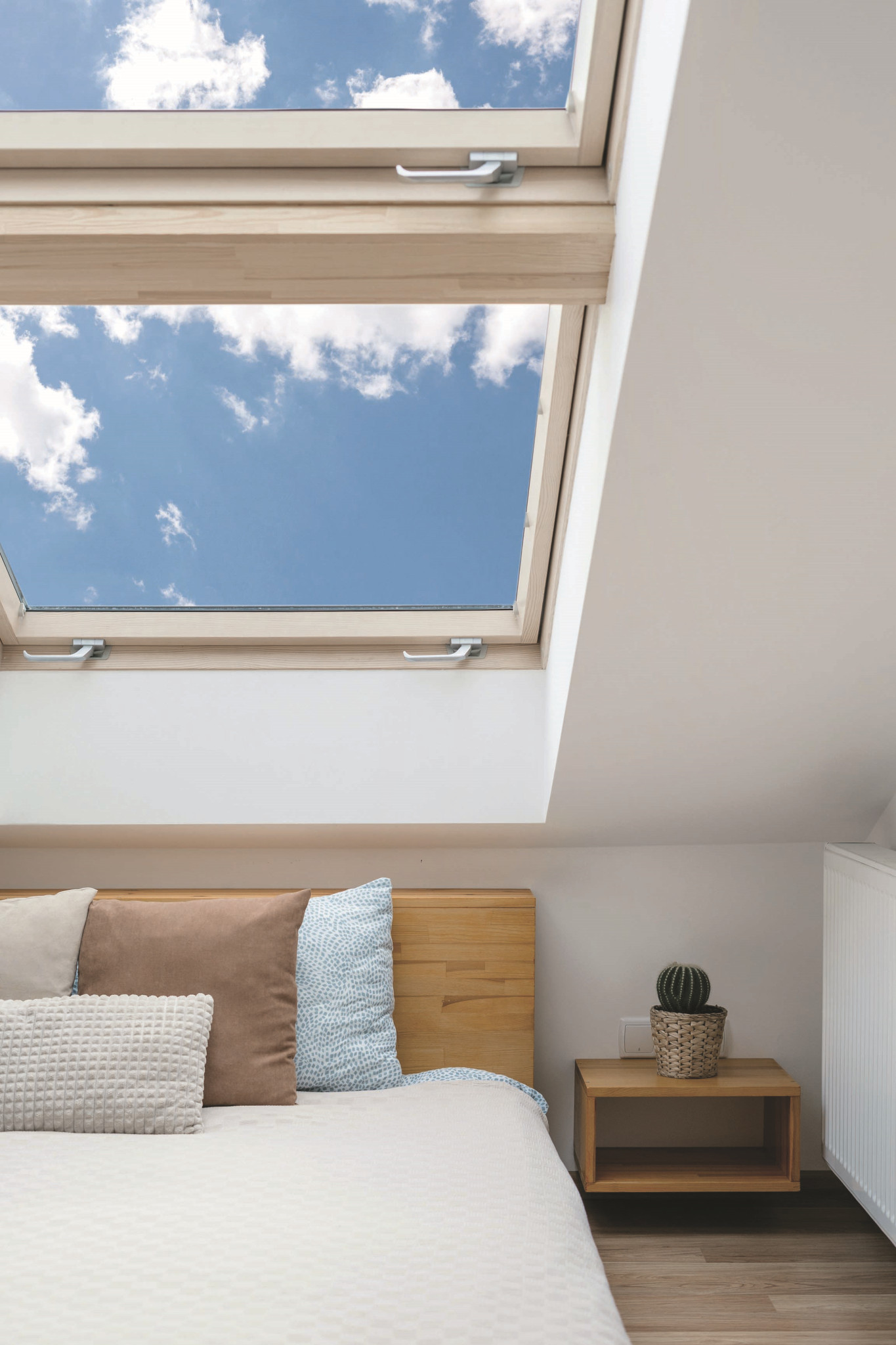 Есть два наиболее популярных варианта использования низких мест под скосами крыши. Первый — поставить там невысокую мебель, например кровать, второй — оборудовать в этих зонах системы хранения. Самый простой вариант зонировать пространство — установить двери-купе из трех полотнищ. Одно из них по форме должно напоминать трапецию, в которой нижняя часть параллельна полу, а верхняя повторяет форму скошенной крыши мансарды. За такой перегородкой можно легко спрятать как спальную зону, так и зону хранения.