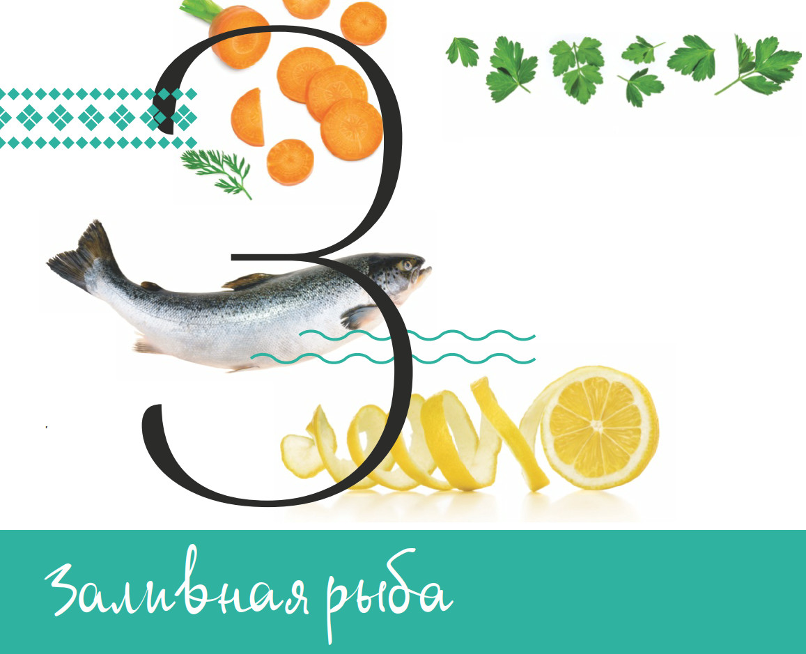 Блюдо «Заливное» в современном его понимании появилось в России лишь в конце XVIII века, хотя это название встречалось и ранее. Например, в средневековой книге «Домострой» игумен Сильвестр, перечисляя, что «в Великий мясоед после Рождества Христова к столу подают», упоминал «заливное осердье лосиное», очевидно, имея в виду более древний аналог этого блюда – студень (холодец). Собственно, именно он и лег в основу заливного Петровской эпохи, но в несколько переформатированном виде. Если студень готовился из остатков рыбы или мяса, то, по замыслу французских поваров, работавших при Петре I над модернизацией традиционных кушаний русской кухни, заливное требовало самых лучших продуктов. Нарезать их надлежало так, чтобы даже сквозь объемную толщу желе отчетливо виднелась их естественная структура, а само оно должно было быть прозрачным, как стеклышко. В стремлении добиться такого эффекта кулинары из Парижа, работавшие в Петербурге, оттачивали целый ряд непростых техник, среди которых – осветление бульонов при помощи оттяжки черной икрой (она «впитывала» из жидкости всю муть), их легкое подкрашивание лимонной цедрой, шафраном и куркумой и даже использование специального «рыбьего клея», призванного скреплять результат. «Вишенками» на этом соленом «торте», подававшемся, как правило, на большом овальном блюде или тарелке в форме рыбы, служили яркие добавки-акценты, которые делались из овощей (наиболее эффектно выглядят полумесяцы лимона и фигурно нарезанная морковь), а также предварите