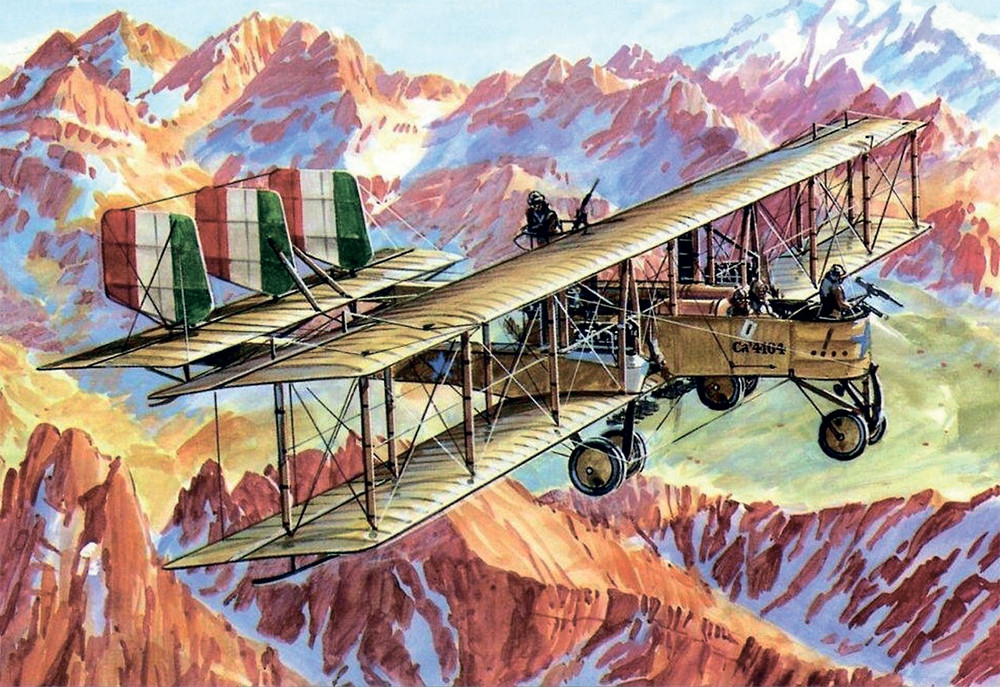 В 1913 году 26-летний Джованни Капрони первым в Западной Европе взялся за конструирование тяжелого многомоторного аппарата. Подтолкнули его на это работы И. Сикорского: вскоре после сообщения об успешных полетах российского гиганта «Русского витязя» Капрони на собственной авиафирме начал разработку машины такого же класса. Вероятно, конструктор не имел подробной информации о русском аэроплане, поскольку машина получилась абсолютно непохожей на «Витязя». Надо отдать должное его таланту: проект не являлся ни копией, ни даже аналогом самолета конструкции Сикорского. Итальянец создал принципиально иную схему двухбалочного трехмоторного аэроплана с коротким фюзеляжем-гондолой. Работы над самолетом продолжались около года. В октябре 1914-го он совершил свой первый полет под управлением летчика-испытателя Эмилио Пенсути (Emilio Pensuti; 1890–1918). Когда 23 мая 1915 года Италия вступила в Первую мировую войну на стороне Антанты, итальянская военная авиация (Corpo Aeronautico Militare – CAM) была единственной на Западе имевшей тяжелые бомбардировщики. Уже 20 августа 1915 года два «Caproni» совершили первый на западноевропейском ТВД боевой вылет – налет на расположенный неподалеку от Любляны австро-венгерский аэродром Айшевица (Aisovizza). Очень успешным был налет двадцати двух Ка-3 на расположенные в Триесте австро-венгерскую базу гидросамолетов и арсенал с боеприпасами и вооружением.