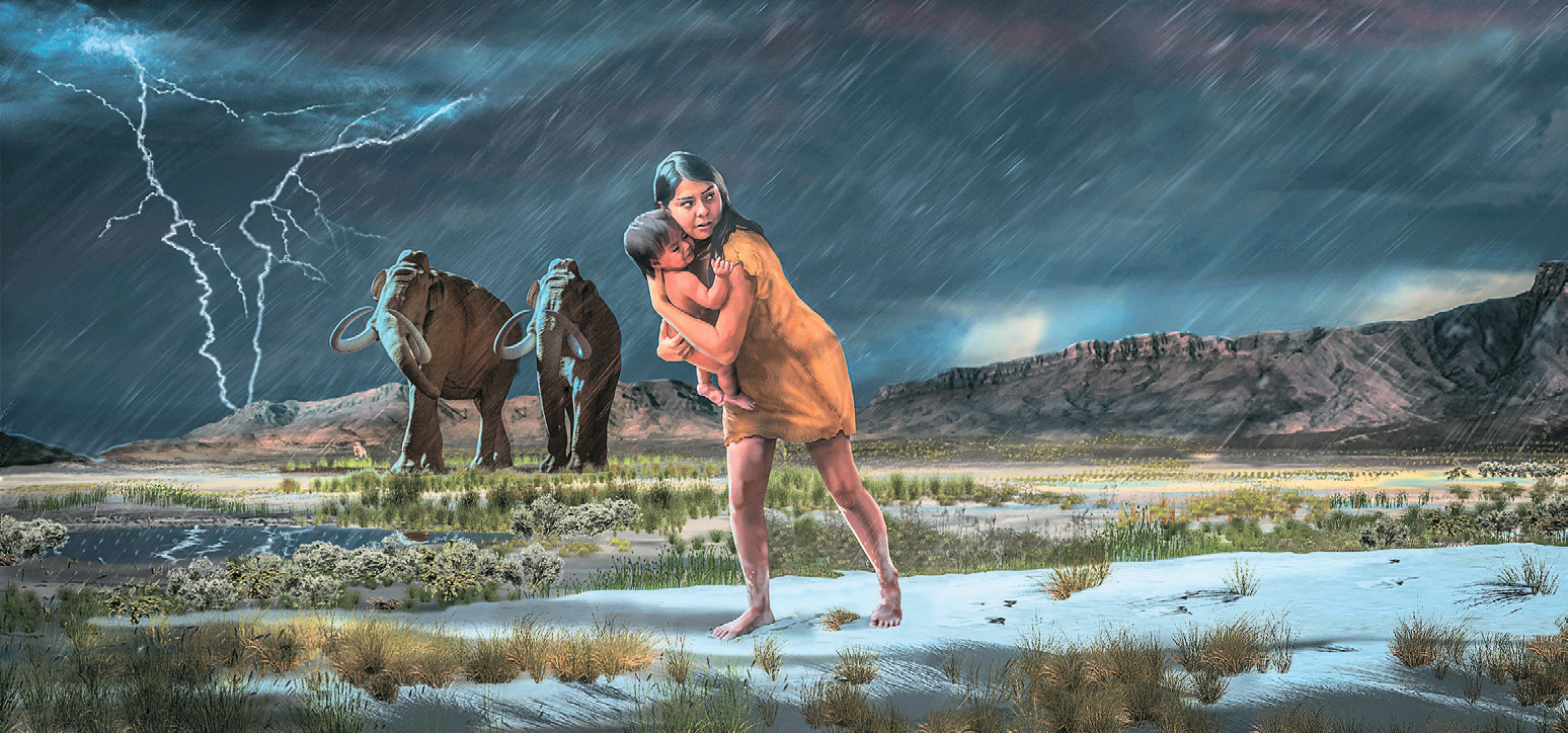 В национальном парке Уайт-Сэндс (Нью-Мексико, США) обнаружили цепочку из древних отпечатков человеческих ног, протянувшуюся на полтора километра, — это самая длинная из подобных «тропинок». Когда-то здесь было озеро, в прибрежной грязи и песке которого и сохранялись следы. Песок там необычный — гипсовый, поэтому он законсервировал отпечатки, оставленные чуть более 10 тысяч лет назад, в конце последнего оледенения.