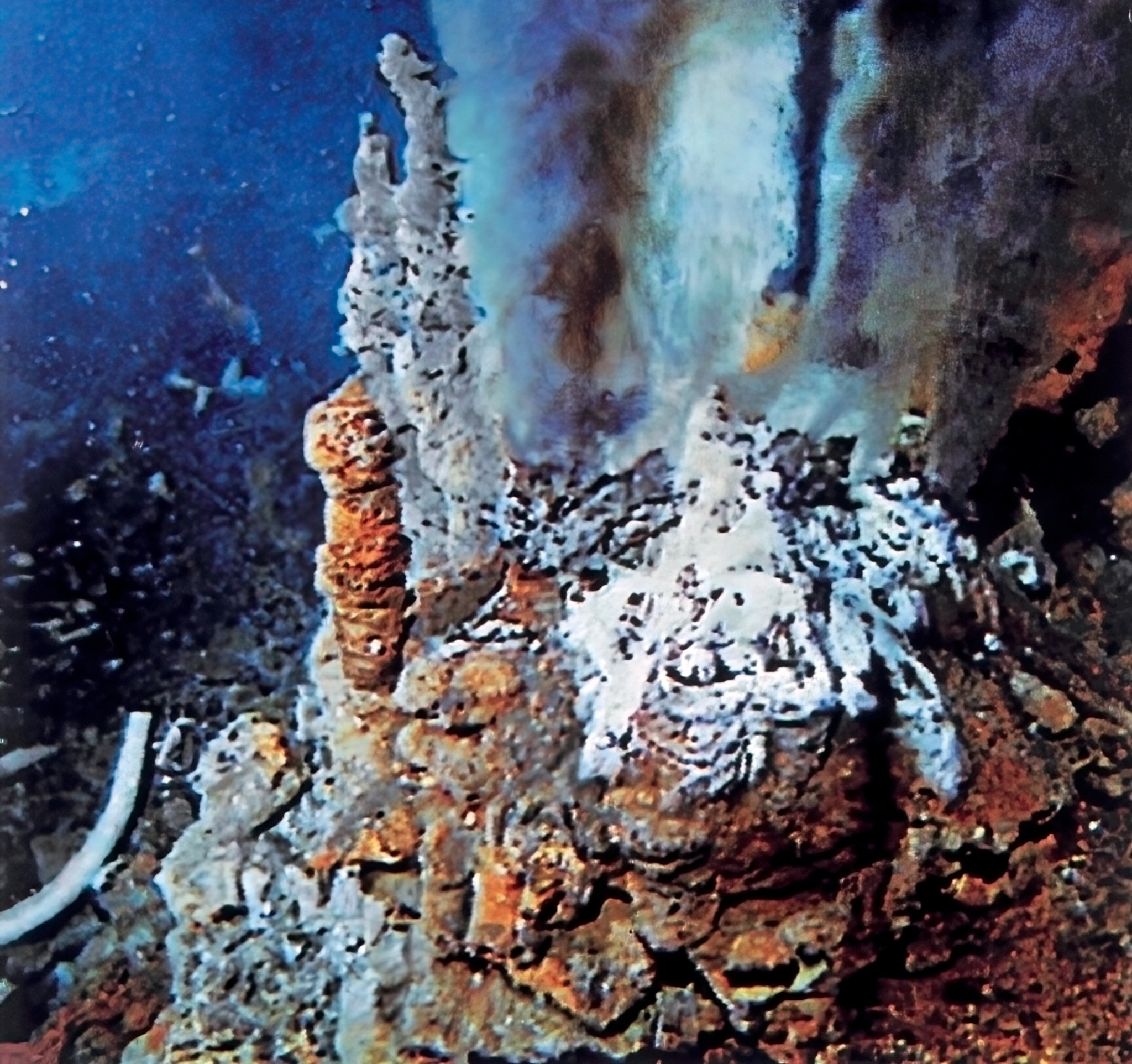 Вестиментиферы обитают в среде, содержащей высокие концентрации углекислого газа и сероводорода. Эти соединения входят в состав вулканических газов, просачивающихся через трещины в породах. Придонная вода Мирового океана богата нитратами, которые в поверхностных водах всегда в дефиците, — ведь их используют водоросли как источник азота. Для хемоавтотрофных бактерий, живущих внутри клеток трофосомы*, нитраты также необходимы в качестве источника азота, но на больших глубинах их дефицита не наблюдается, ведь там всегда темно и нет водорослей.