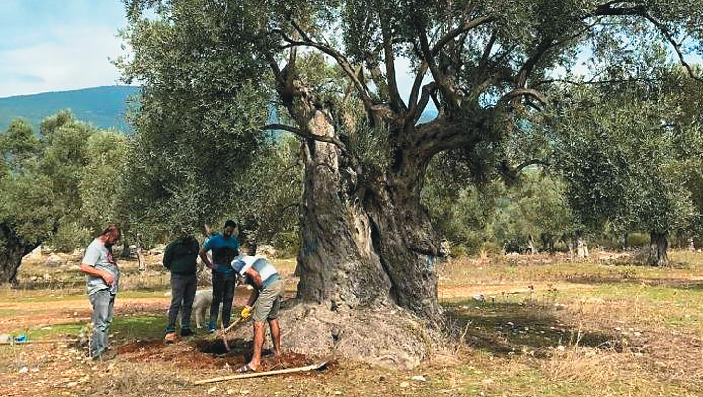 Турецкие физики использовали новейшие методы датирования минералов грунта вокруг корней гиганта. Осторожно выкопав шесть ям, они взяли пробы почвы от корней дерева, с той глубины, на которую обычно сажают косточку оливы. Извлечённые минералы (полевой шпат и кварц) исследовали с помощью оптически стимулированной люминесценции. Этот метод позволяет определить, когда образцы в последний раз подвергались действию солнечного света, то есть были на поверхности или близко к ней, когда косточку закопали в землю. Результат: это произошло около 3000 лет назад, в железном веке.