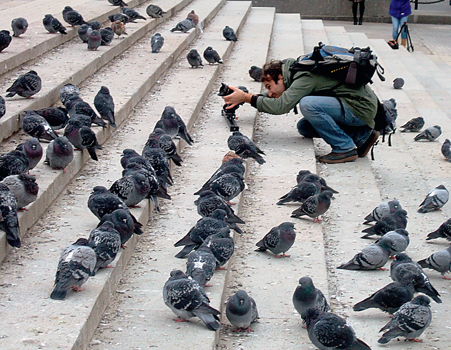 На снимке: стая голубей, избравшая для отдыха ступени лестницы, ведущей в Российскую государственную библиотеку.